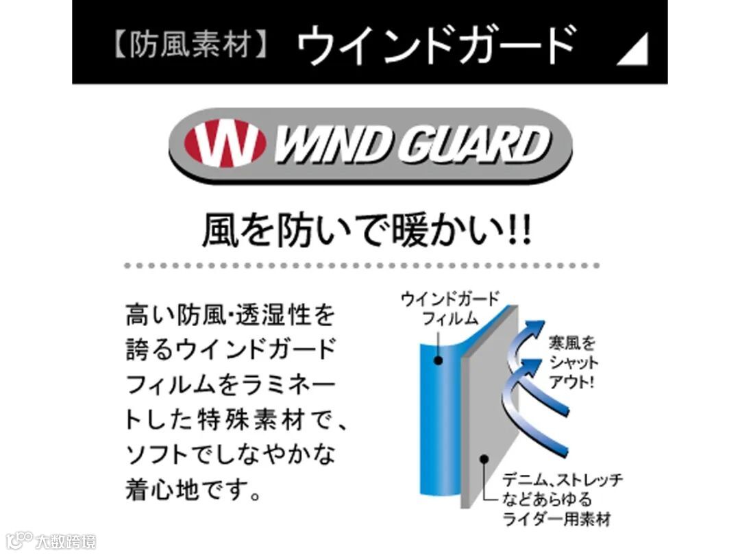 采用具备高防风透湿性的“Wind Guard”面料,即使搭配紧身牛仔裤或皮裤穿着也不会束缚行动。