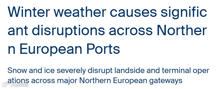 暴雪、极寒等气候对欧洲各地的公路货运、铁路运输及内河航运等所有主要运输方式造成影响。