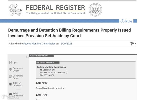 FMC此次发布的最终规则正是对这一司法判决的响应,正式将被撤销的条款从联邦法规汇编中移除,新规自12月29日在《联邦公报》发布之日起生效。