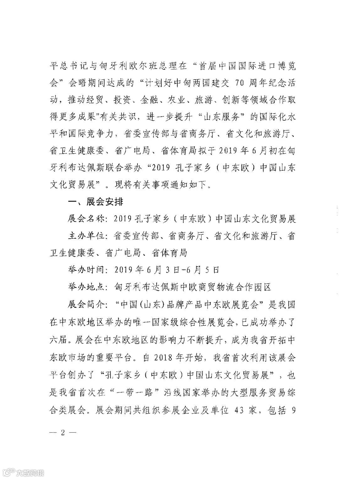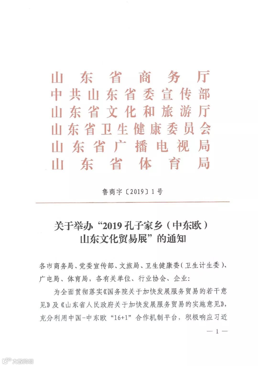 导读:关于举办“2019孔子家乡(中东欧)山东文化贸易展”的通知来源:山东省商务厅