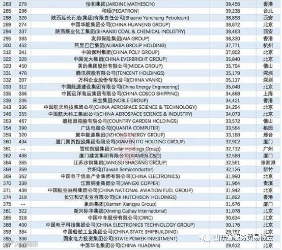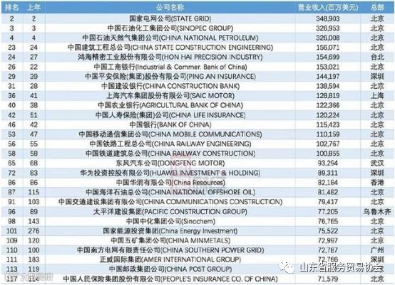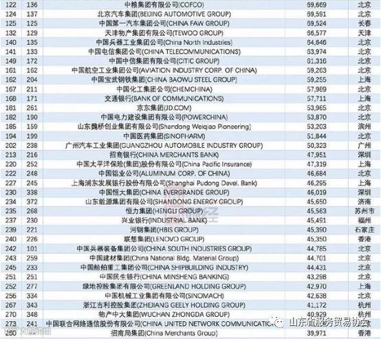 以下为2018年世界500强120家中国上榜公司完整名单: