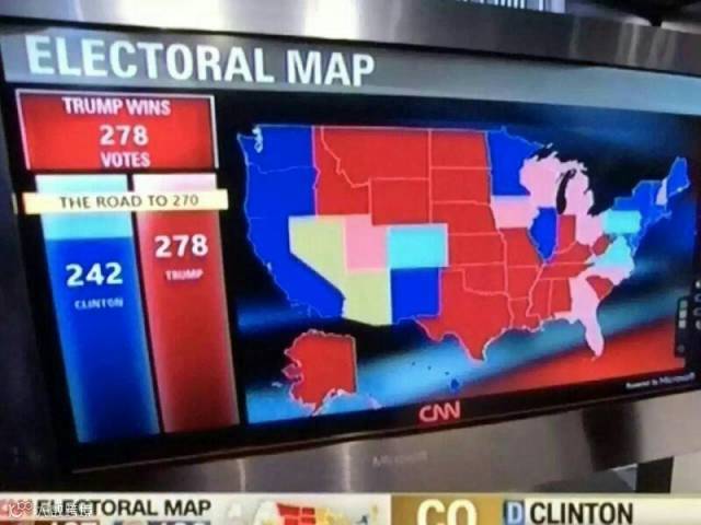 【注:真正的总统选举是在12月第二个星期三之后的第一个星期一举行(2016年是12月19日)。届时,各州和哥伦比亚特区被推选出的“选举人”将前往各州的首府进行投票。获270张选票以上的候选人将当选总统,并于2017年1月20日宣誓就职。如果不出意外,今天的结果就是最终结果了】