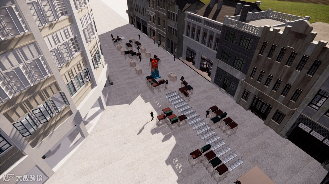 4M高的骑楼装置正对着复古大箱子