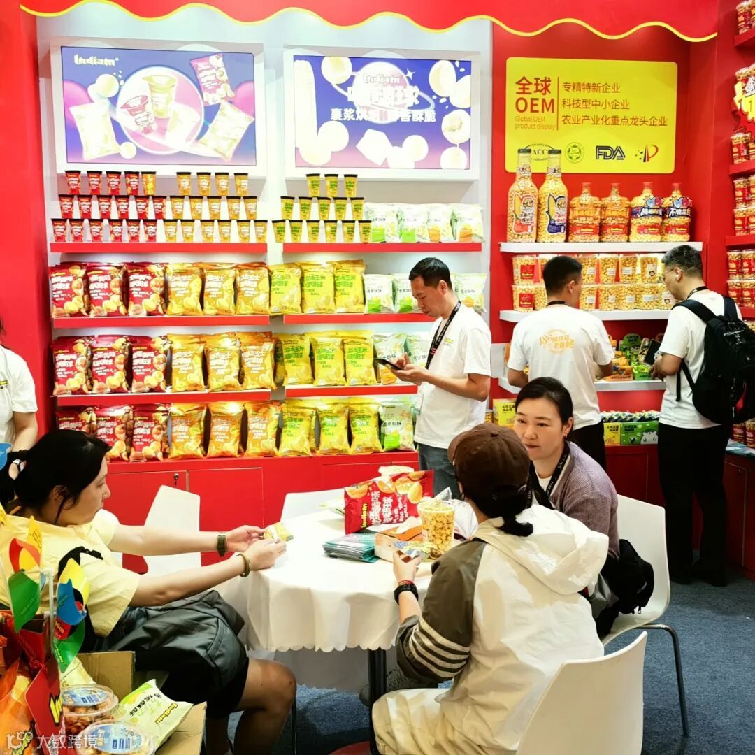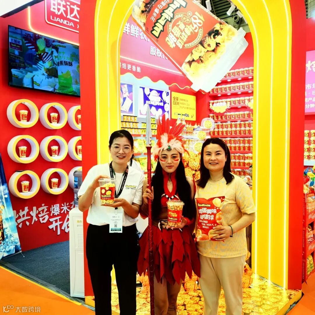 展会现场精彩纷呈,人流不断。联达兴盛携大热产品Indiam印第安爆米花、Indiam印第安酥酥,及重磅新品Indiam印第安啵啵球、小熊艾迪爆米花等系列产品,闪耀亮相W1F032展位。