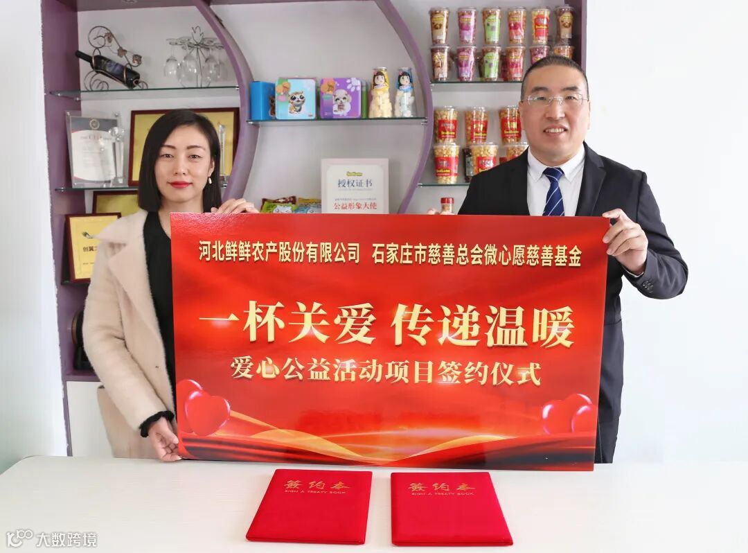 2月23日,联达兴盛集团旗下河北鲜鲜农产股份有限公司与石家庄市慈善总会微心愿基金签约“一杯关爱 传递温暖”爱心公益项目协议。