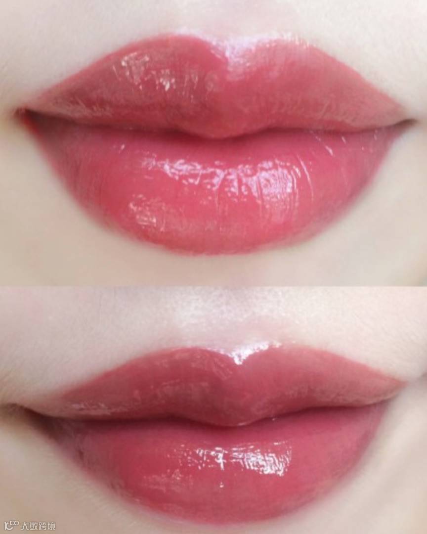 非常显嫩的一个红色,薄涂偏水红,厚涂红得比较正,非常显白不老气。
