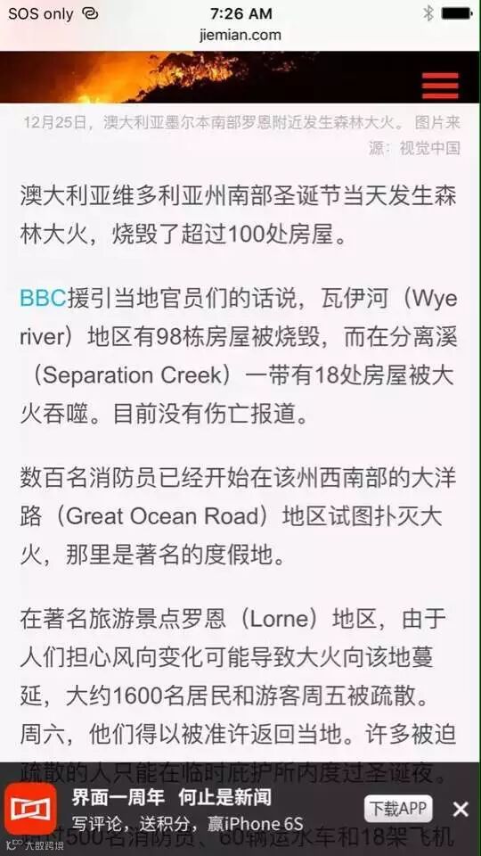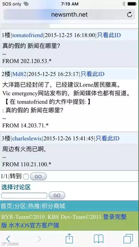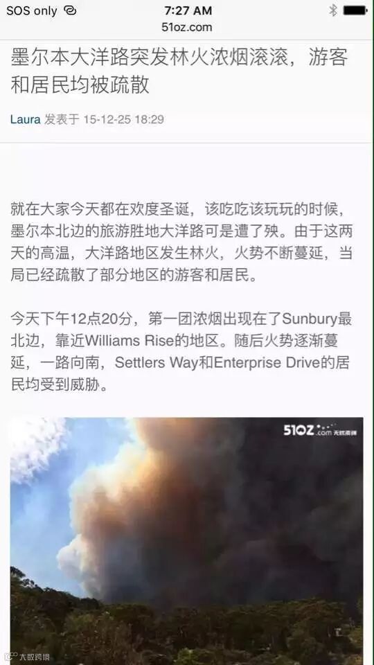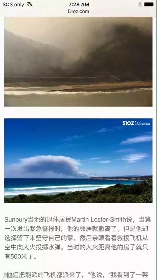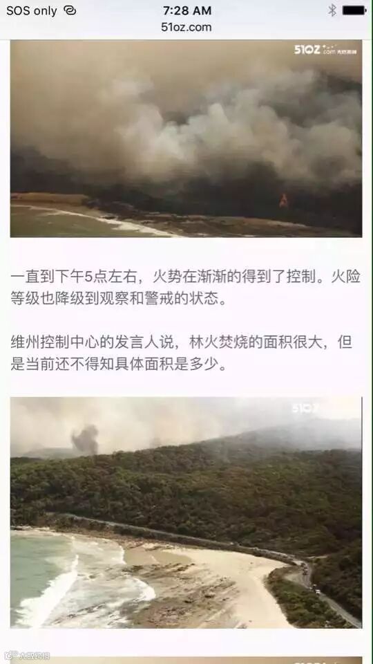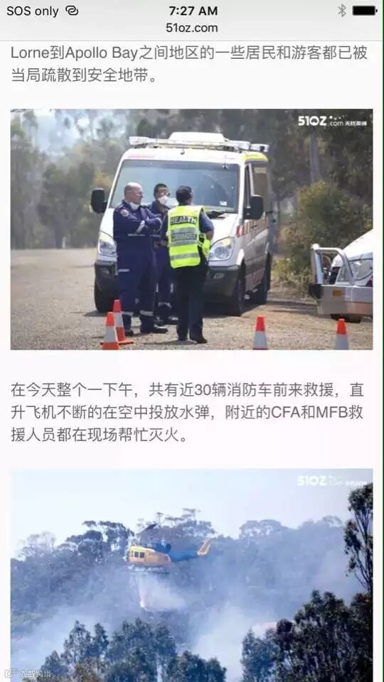 警察叔叔看我们一车老的小的,建议我们回去Geelong住宿,可是他不知geelong也定不到酒店了,在分析了地图之后,决定向北开出去40多公里,GPS有了信号后搜索了一条从北向西南方向看上去不在火区的路,决定还是信GPS一次,一上路才发现GPS一反平时领大路的习惯,竟然给我们引了一条伐木工人运木头的山间小道,一抹漆黑也不敢掉头怕掉下山谷,硬着头皮往前开,开到一半竟然还有一颗倒下的树拦着路,多亏这一处还宽车还可以过,战战兢兢又开了40多公里盘山公路,竟然开到了和大洋路交界处,第二天一早发现离西边封路口不到2公里,太玄了!正个过程孩子们都睡的好香,老妈很担心但也很镇静。到达酒店已经午夜,把孩子们一个个抱进来,给老妈煮了米饭。第二天一早去看时apollo bay的大洋路还是封的,否则还要去看看lorne到apollo bay之间的大洋路。警察说几天都不会通路。没办法,只好前行!