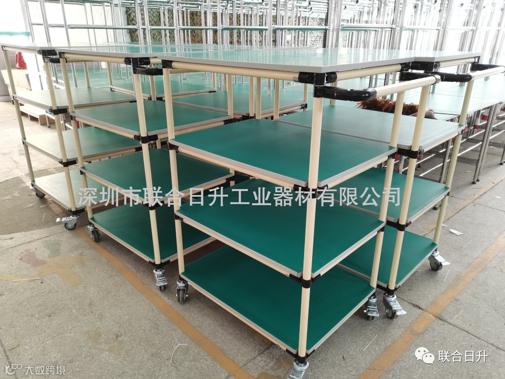 线棒周转车主要由柔性线棒管材、线棒金属接头、层板和脚轮组成。线棒周转车的款式及规格都可根据企业的实际需求设计组装。应用领域周转车由线棒及其配件构成,因此安装方便,灵活性高,可以随意控制高度和大小,它可以根据你的想象和你对它的特殊要求来个性化的组装,广泛用于SMT加工、机械、汽车、家电、轻工、电子等生产企业物流中的运输、配送、储存、流通加工等环节。