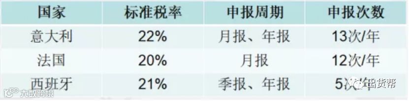 意法西三国的VAT标准税率、申报周期及申报次数