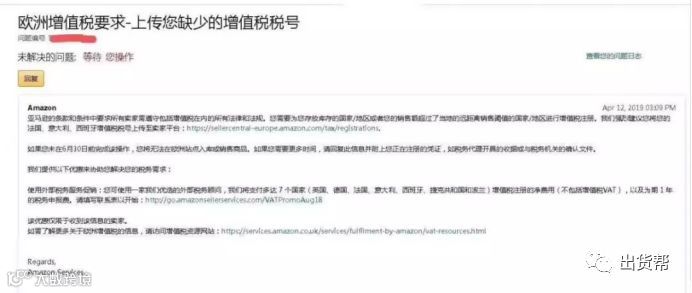 近期,不少法意西站的卖家都收到了亚马逊要求上传VAT税号的邮件通知,要求卖家在6月30日前上传增值税税号,否则将面临禁售和无法入库。