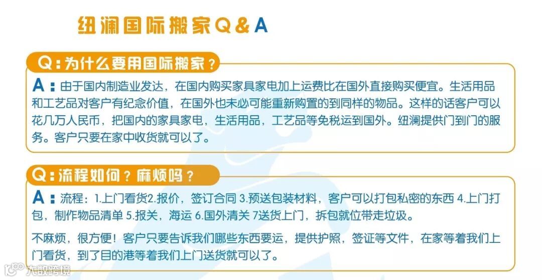 最后,要跟大家分享的是除了以上信息的介绍外,海外搬家还能为我们做什么呢?大家深呼一口气,重点来了!!!国际搬家的服务形式:门到门(door to door),何谓门到门?用最简单,最通俗的解释就是,大家坐在家里不用动,坐等我们师傅上门收拾,整理,包装需要搬运的物品,最后垃圾带走,这当中你只用做下交响乐团的指挥,是不是很惬意,有种做老爷的感觉吧