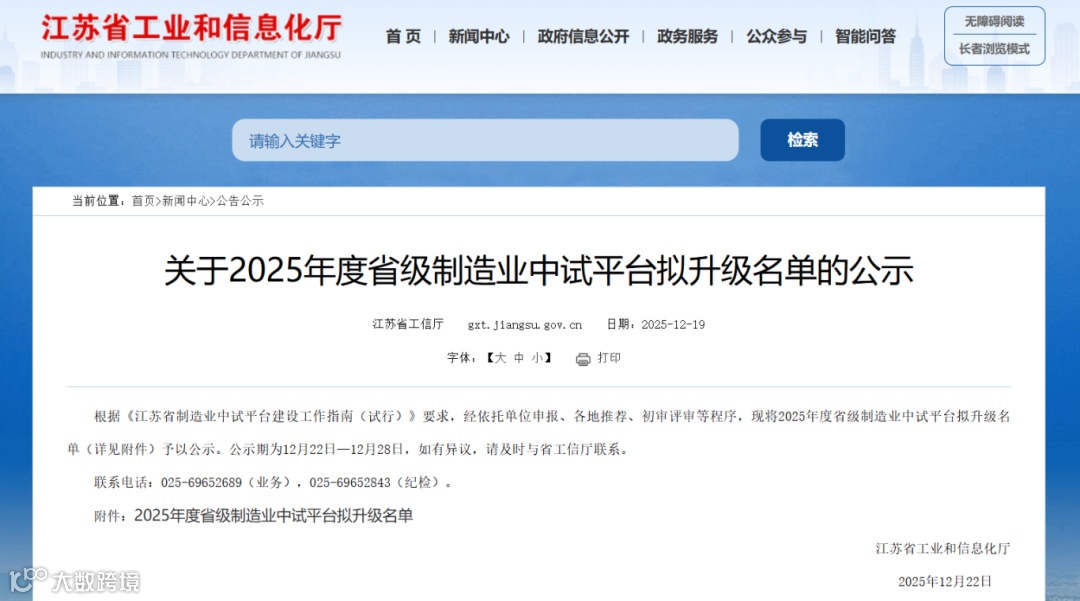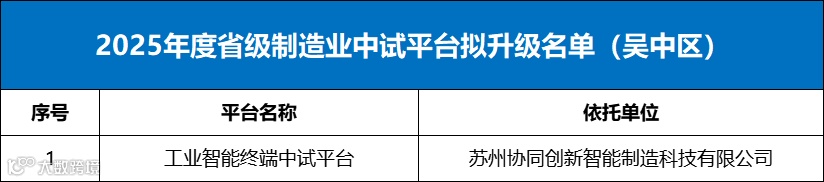 近日,江苏省工业和信息化厅公示了2025年度省级制造业中试平台拟升级名单。协同科技的“工业智能终端中试平台”成功入选。