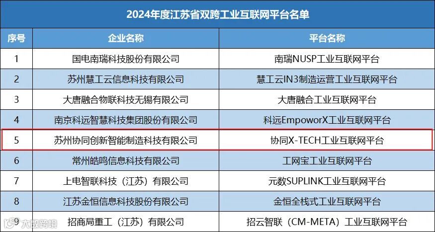 协同科技作为“苏州市智能制造解决方案供应商”“首批十二家工业互联网标识应用供应商”之一,走出了具有平台服务特色的“两业融合”发展模式,承担“国家级跨行业应用及数据要素平台”“江苏省标识解析公共服务平台”等工信部工业互联网创新发展工程及省级重大项目6项,注册标识量达110亿,解析量320亿。智能制造诊断服务已超2200家企业,成功建设200余项智能车间和智能工厂项目。协同科技荣获国家工业互联网试点示范企业、国家级专精特新“小巨人”企业、江苏省重点工业互联网平台、苏州市“独角兽”“瞪羚”企业等60多项荣誉。