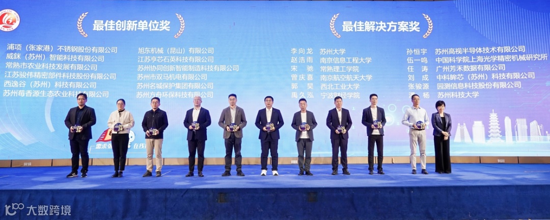 ▲苏州市科学技术局副局长张婷秀颁发最佳创新单位奖、最佳解决方案奖