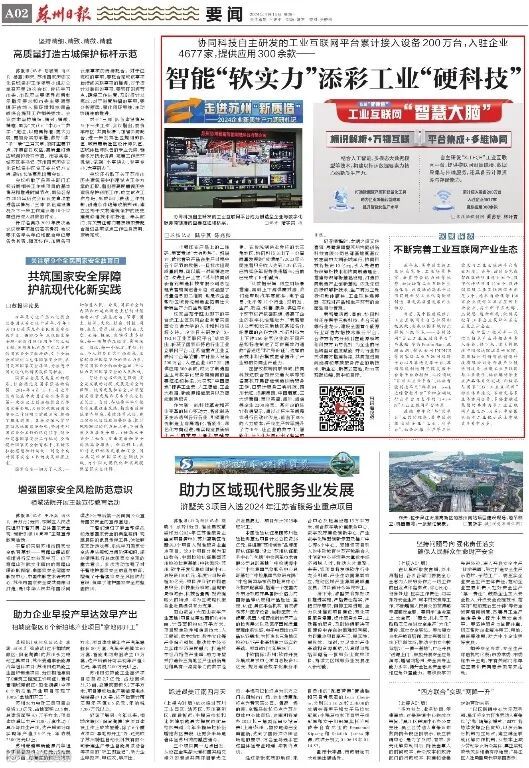 一个喷印在产品上的二维码,里面竟然“大有乾坤”:“扫描它,就能看到产品在生产过程中各个环节的数据,一旦批次出现质量问题,可以第一时间精准定位,改进生产工艺。”苏州协同创新智能制造科技有限公司总经理袁雪腾介绍,这涵益了海量信息的二维码,也是该企业帮助区域传统制造业拓展壮大新质生产力的生动缩影。