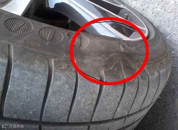 除了划伤,轮胎侧面还有鼓包的情况。这个就没得商量了!鼓包的原因,可能是胎壁被划破、轮胎老化、轮胎质量差等等。不论是哪种原因,只要看到鼓包,请不要开车!不要碰!不用想!换!