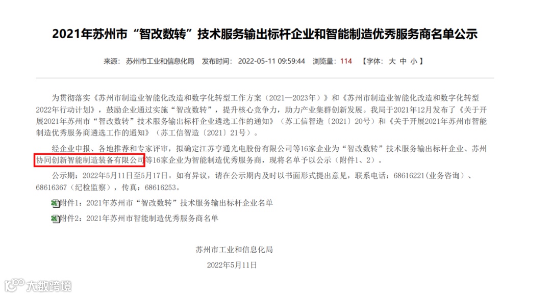为贯彻落实《苏州市制造业智能化改造和数字化转型工作方案(2021—2023年)》和《苏州市制造业智能化改造和数字化转型2022年行动计划》,鼓励企业通过实施“智改数转”,提升核心竞争力,助力产业集群创新发展。 苏州市工业和信息化局于2021年12月发布了《关于开展2021年苏州市“智改数转”技术服务输出标杆企业遴选工作的通知》(苏工信智造〔2021〕20号)和《关于开展2021年苏州市智能制造优秀服务商遴选工作的通知》(苏工信智造〔2021〕21号)。经企业自主申报、各地推荐和专家评审等程序,苏州市共有16家服务商通过评审,入选苏州市智能制造优秀服务商名单。