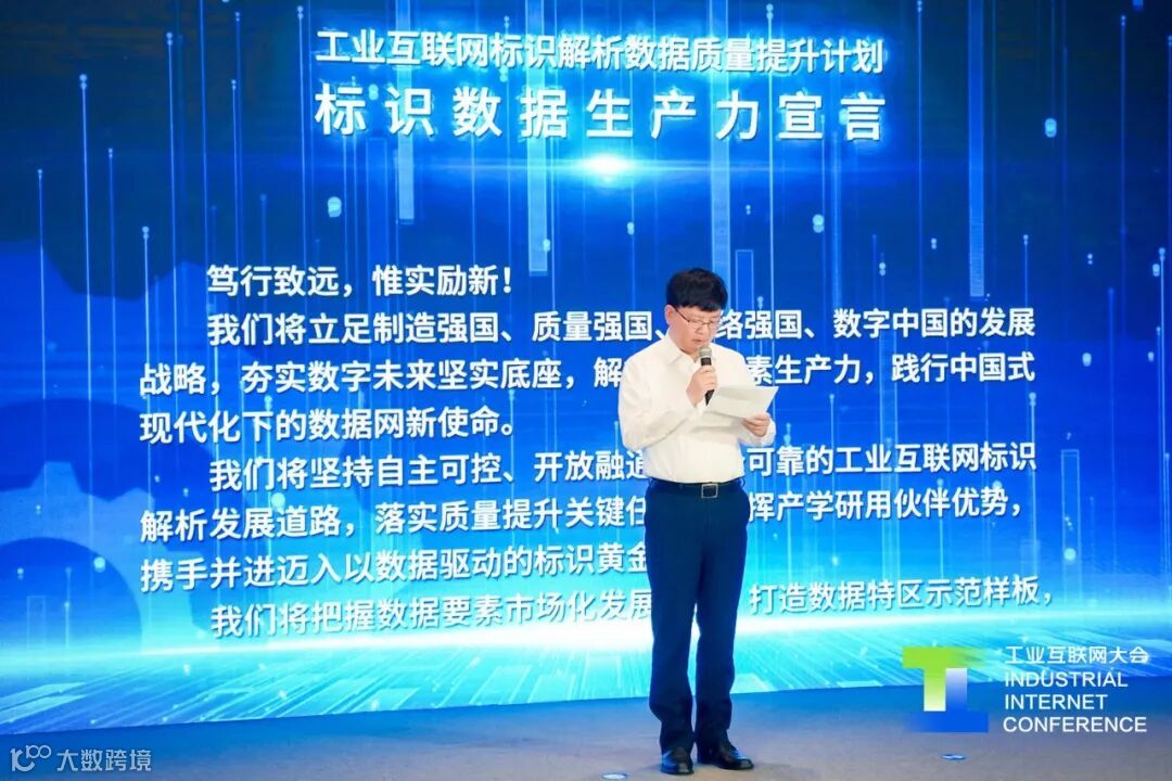 中国信通院工业互联网与物联网研究所所长金键带领参会企业一同宣读了工业互联网标识解析数据质量提升计划-标识数据生产力宣言。