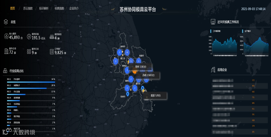 苏州协同一直致力于以设备监控为核心的应用,目前已打造围绕模具、机器人、风力发电、注塑、冲压等12个不同行业的数据采集方案。基于数据采集方案,重点围绕设备场内运维、场外运维展开。通过“苏州协同模具云平台”的信息采集,可有效避免信息壁垒的产生,在模具生产过程中的上下游,无论从设计前期,还是到研发、生产、交易环节,都极大的避免出现信息孤岛的情况。
