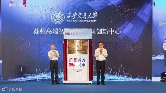 西安交通大学党委书记张迈曾、区委书记唐晓东为苏州高端智能制造协同创新中心揭牌。