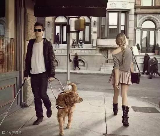 渐行渐近,只见年轻男子高大魁梧,腰板挺直。紧贴着他的德国导盲犬配有专业的拉杆——哦,是一位盲人。