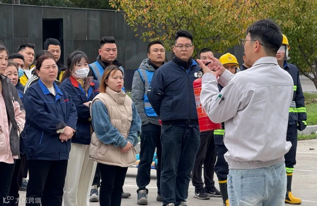 吴江区消防救援队的教官们现场以示范教学的方式,生动地展示了多样化的消防器材使用技巧,并详细讲解了其操作流程。各事业部的员工们全神贯注,依次轮流进行了深入的实操体验。