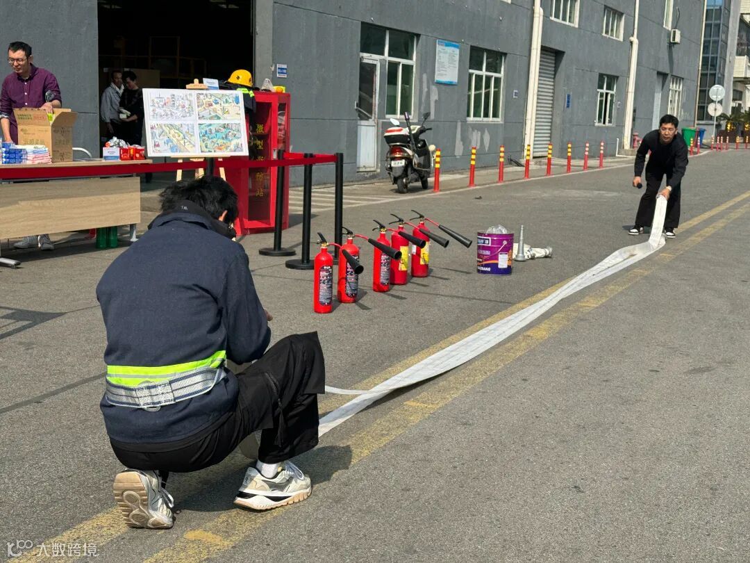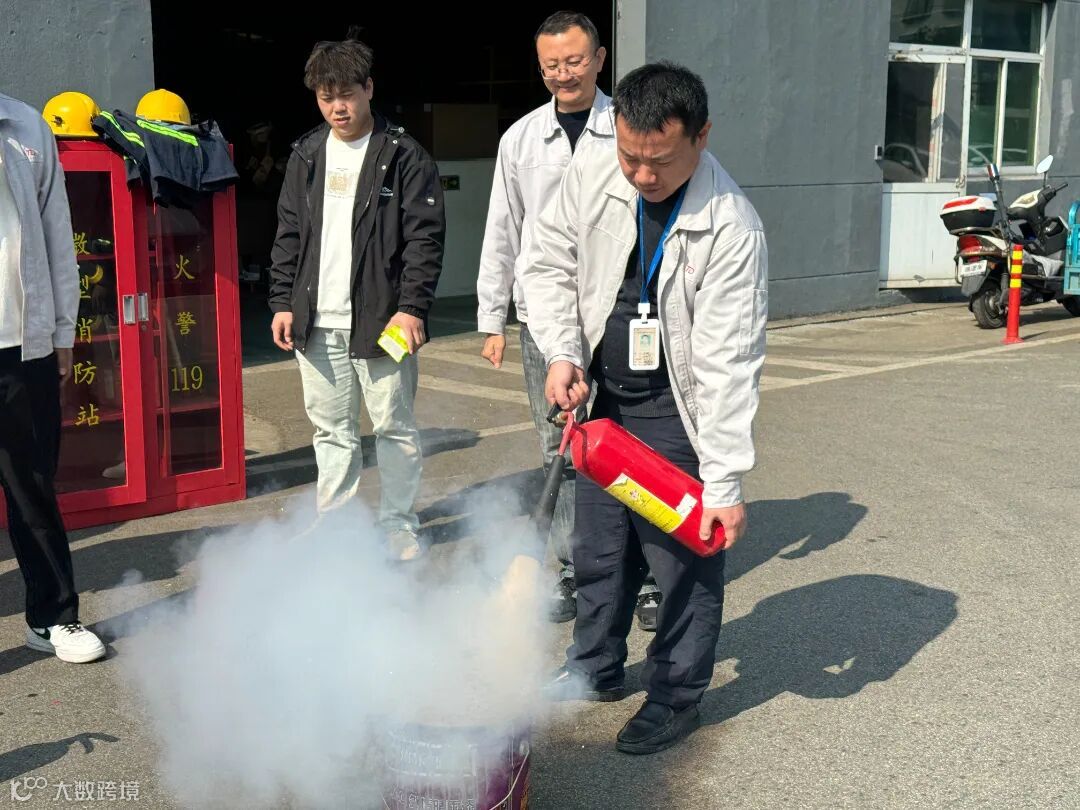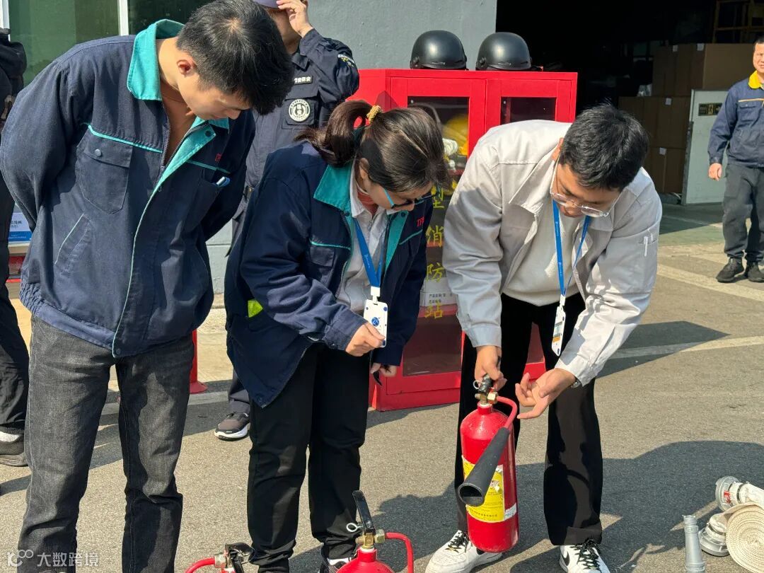 吴江区消防救援大队的教官现场以教学的方式,展示和讲解多种消防器材使用方法,各事业部员工全神贯注轮流进行了实操体验。