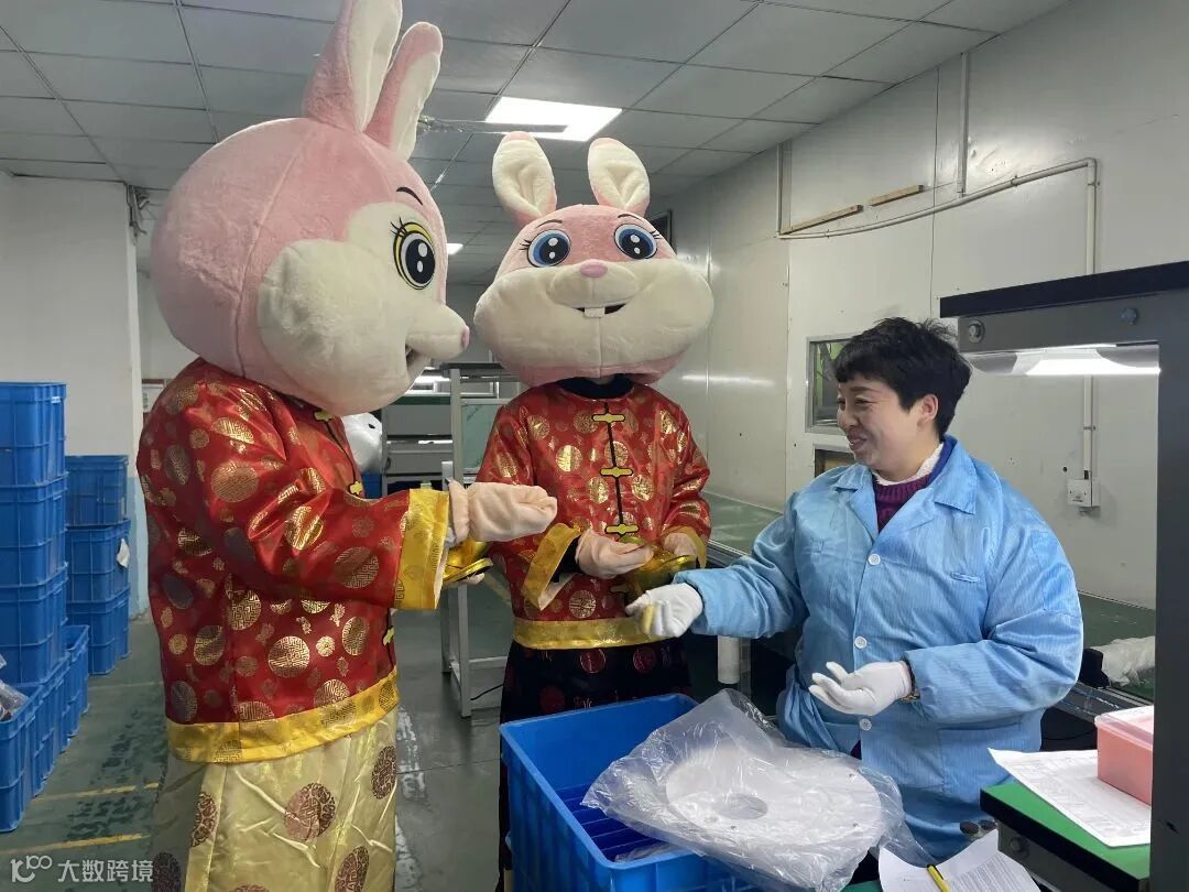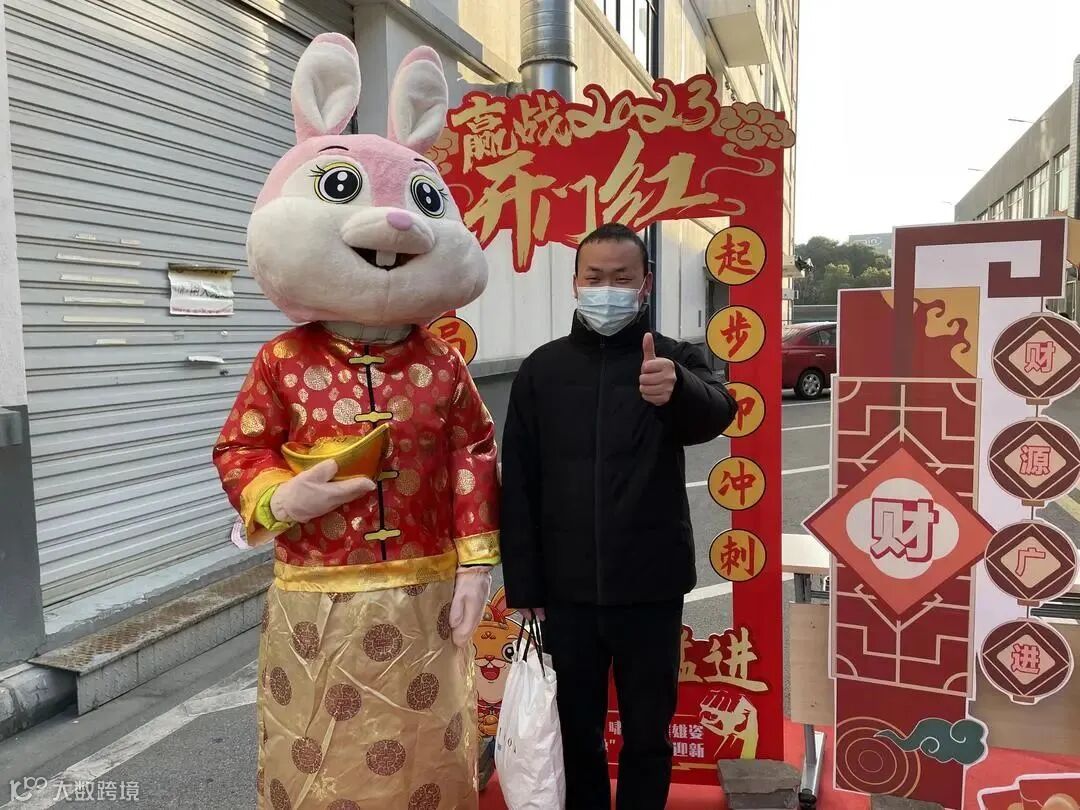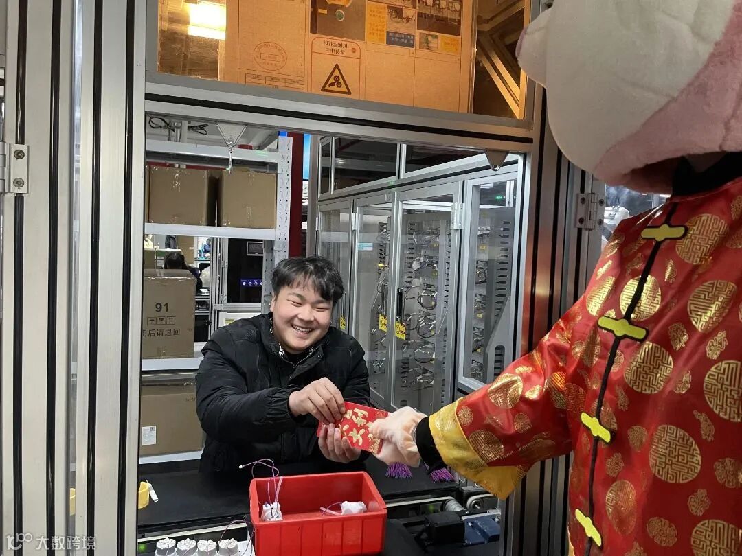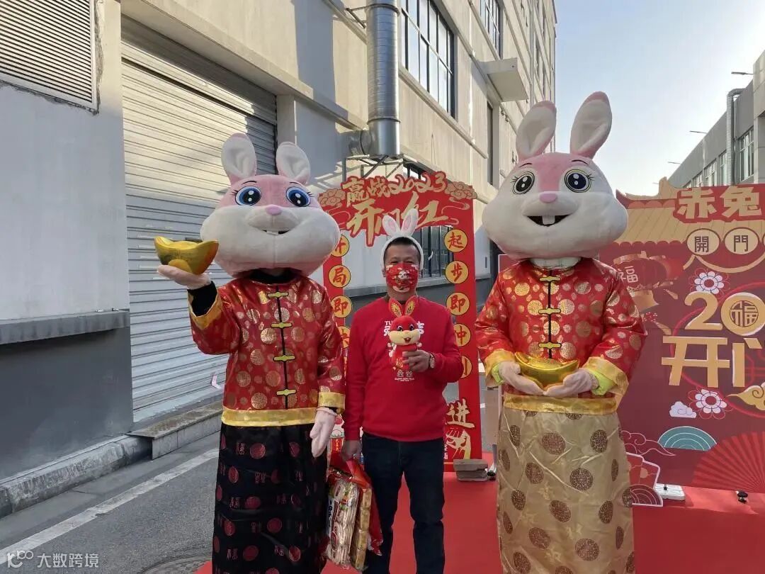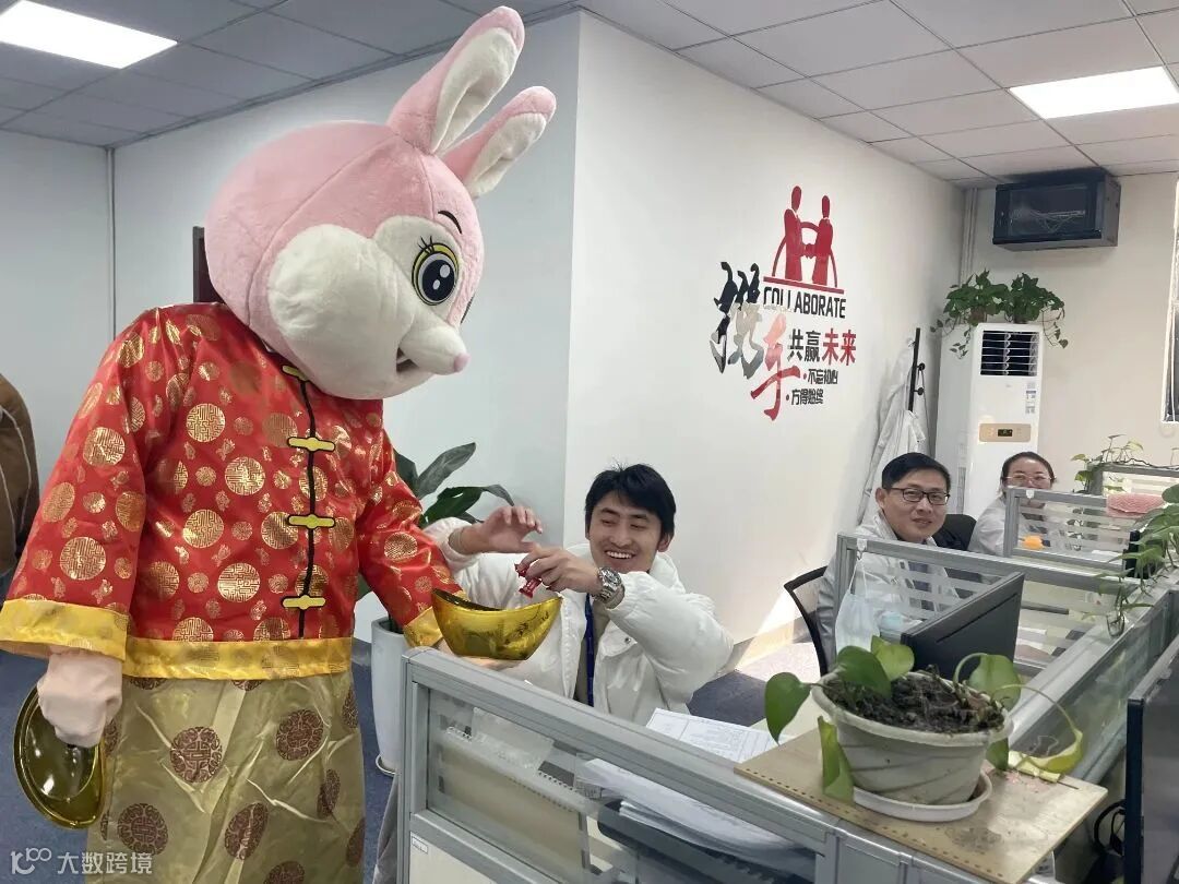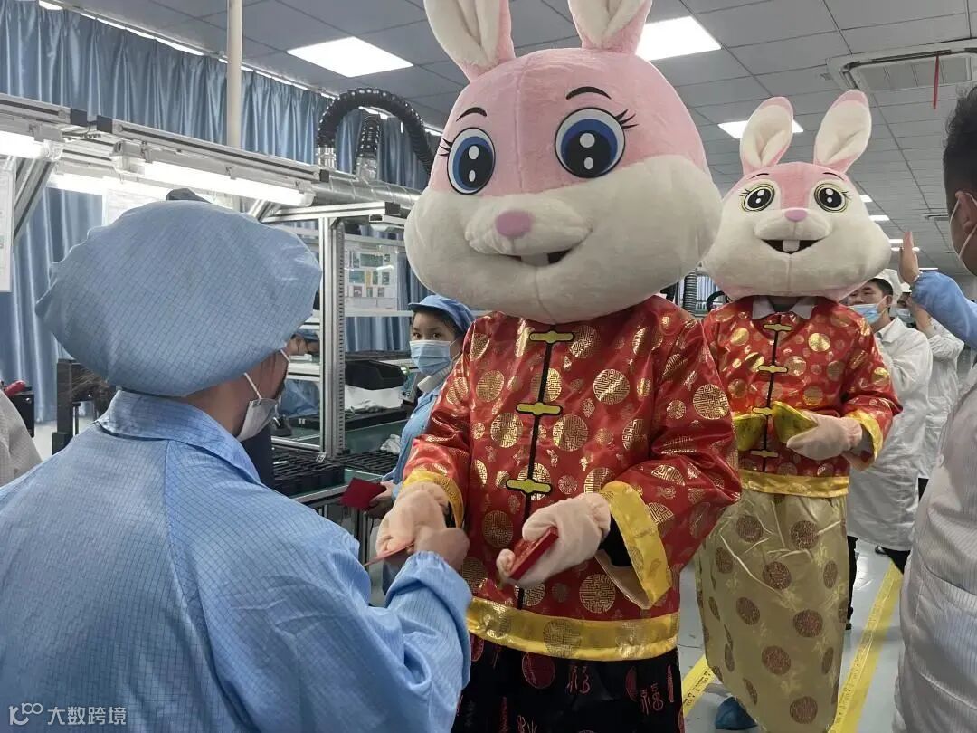 接着,财神兔来到各事业部及产线上,为每名员工送上新春的开门红包,希望大家开工大吉,红红火火,钱程似锦!