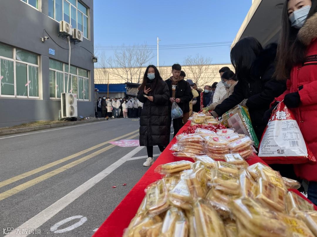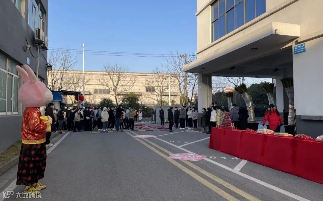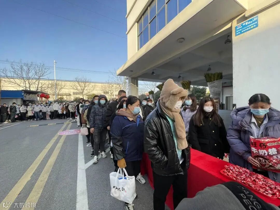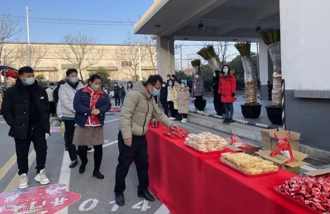 上午7点30分同事们陆续进厂,东迎红墙、脚塌红毯、手拿红糖,2023,红运当头!