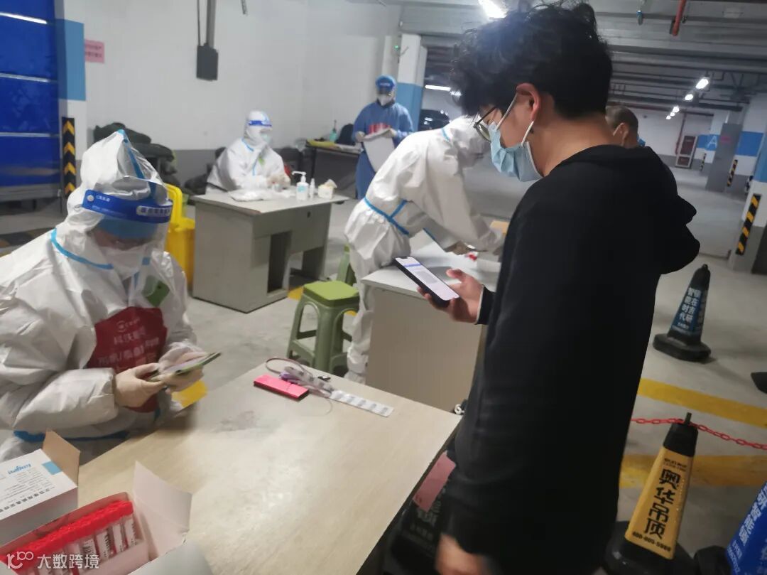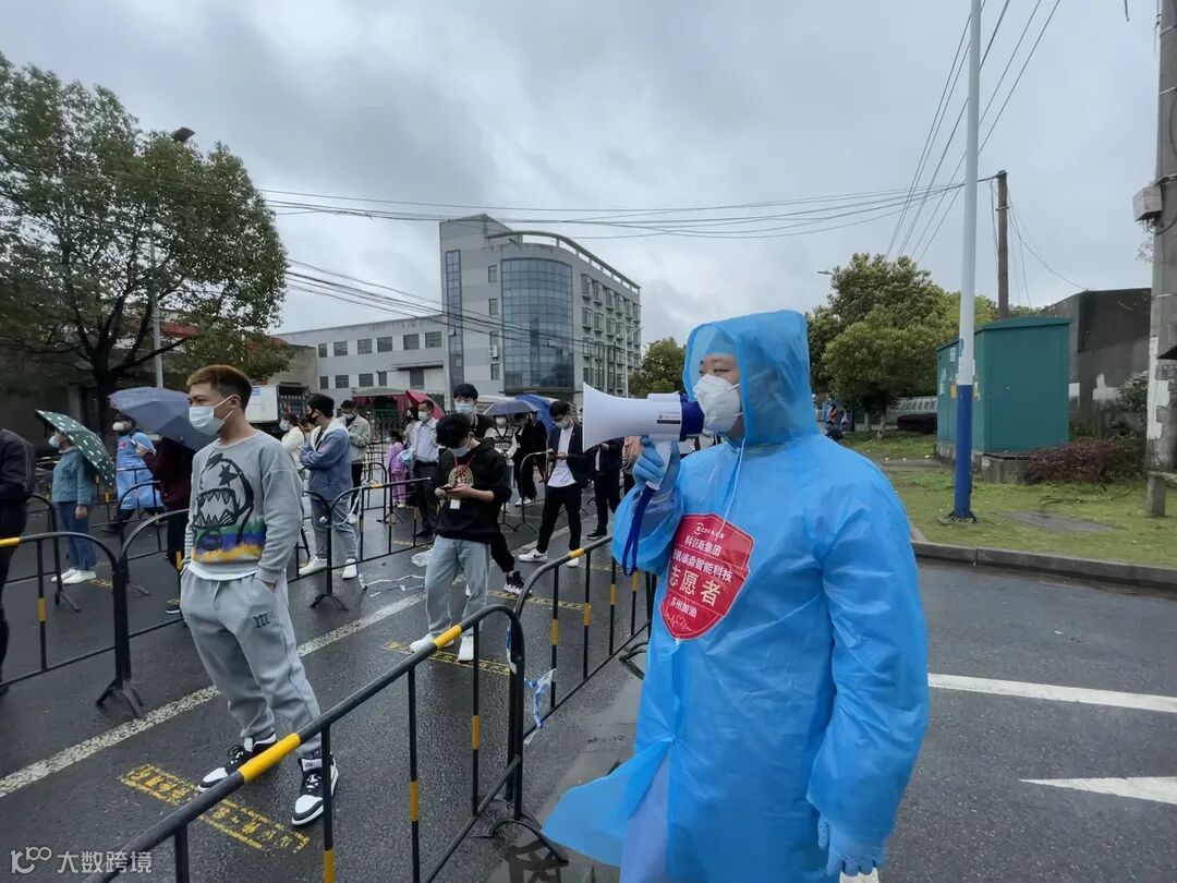 上午6时,夜色褪去阴雨绵绵,检测服务工作正式开始,小蓝衣小白衣们逐渐忙碌起来,面对长长的人流彤帆、泰鼎的志愿者们都已经有条不紊轻车路熟了。
