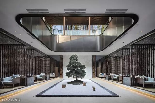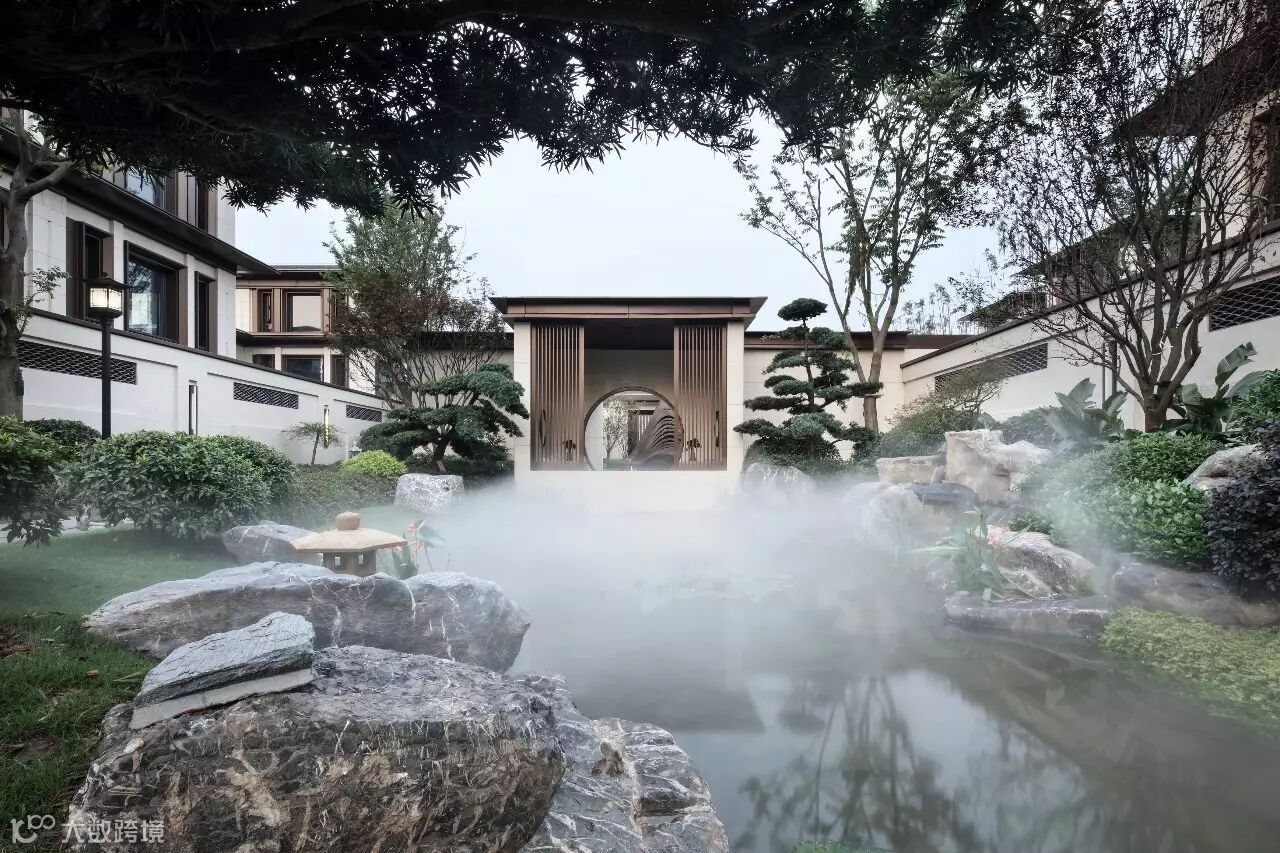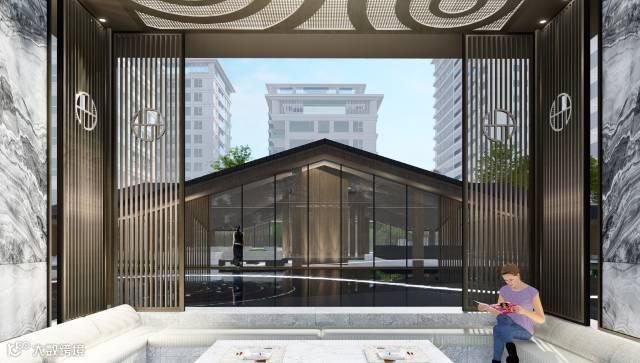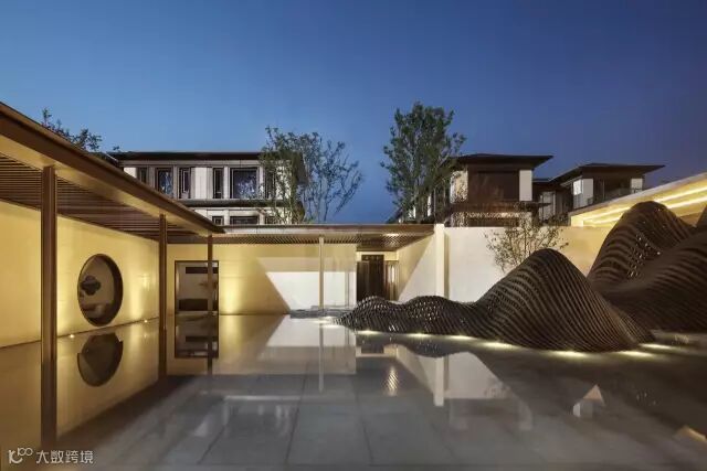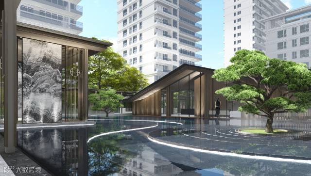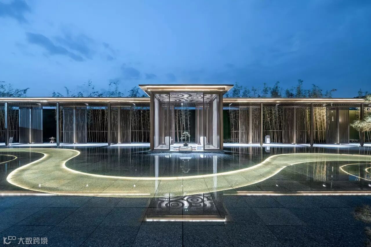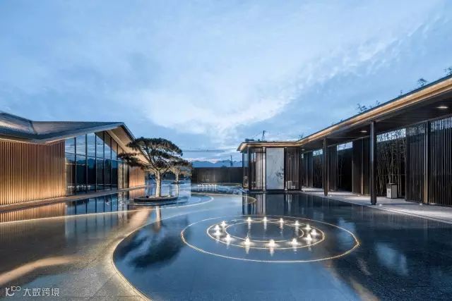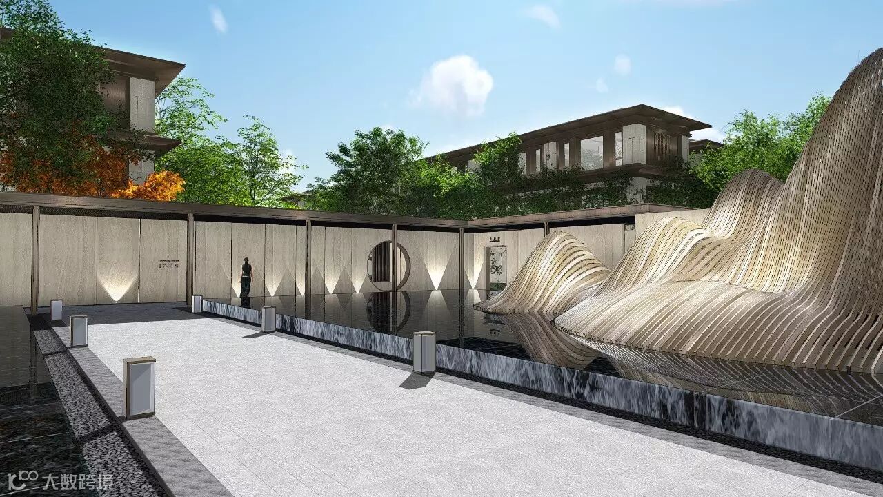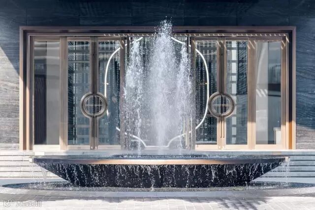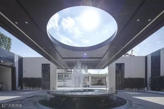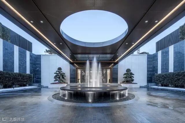 “月印万川,处处皆圆”,项目入口见“印月”,并运用水的元素,采用“四水归堂”的手法,呼应“月印万川”之意,表达东方文化中天人合一的理想状态,成为入口区域视觉和精神的向心所在。