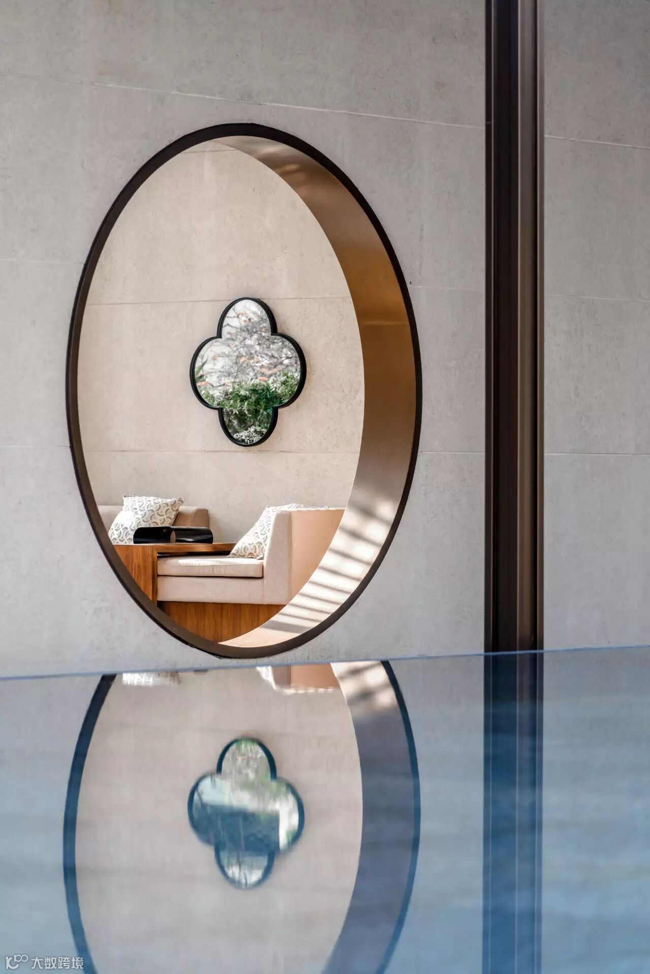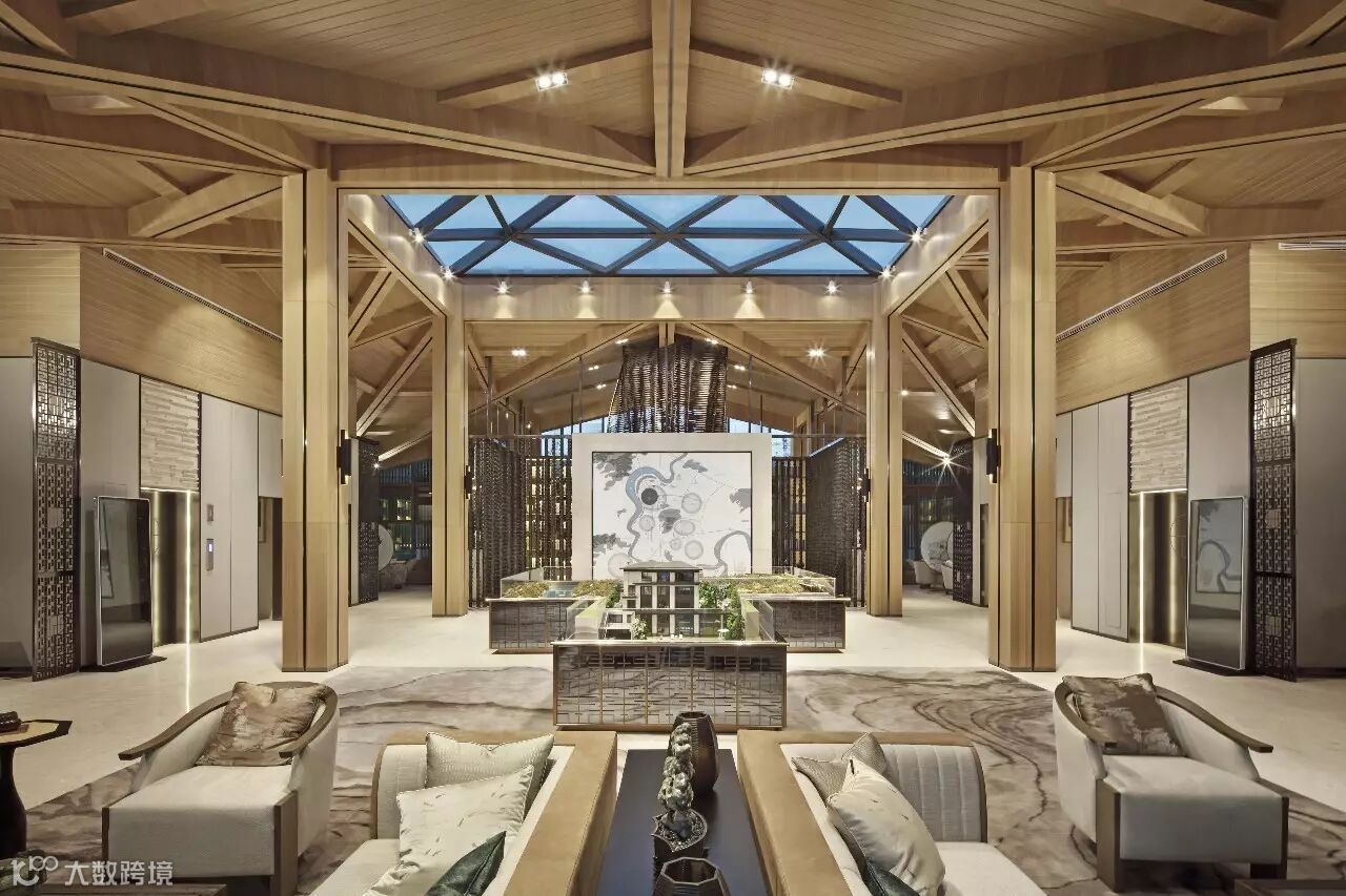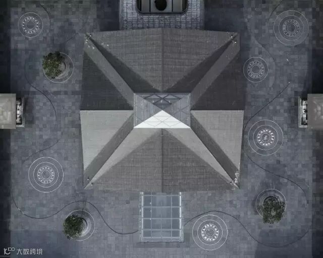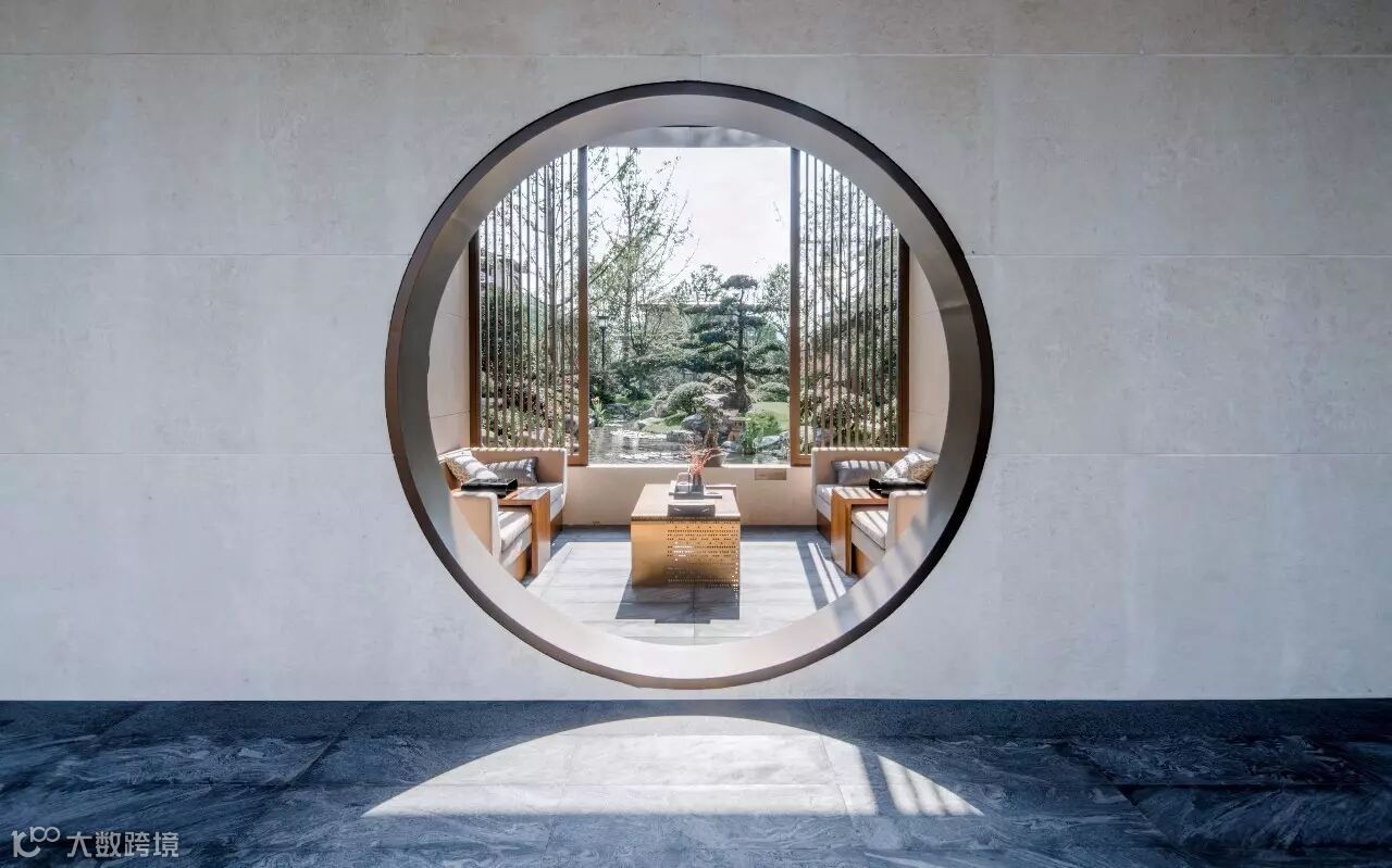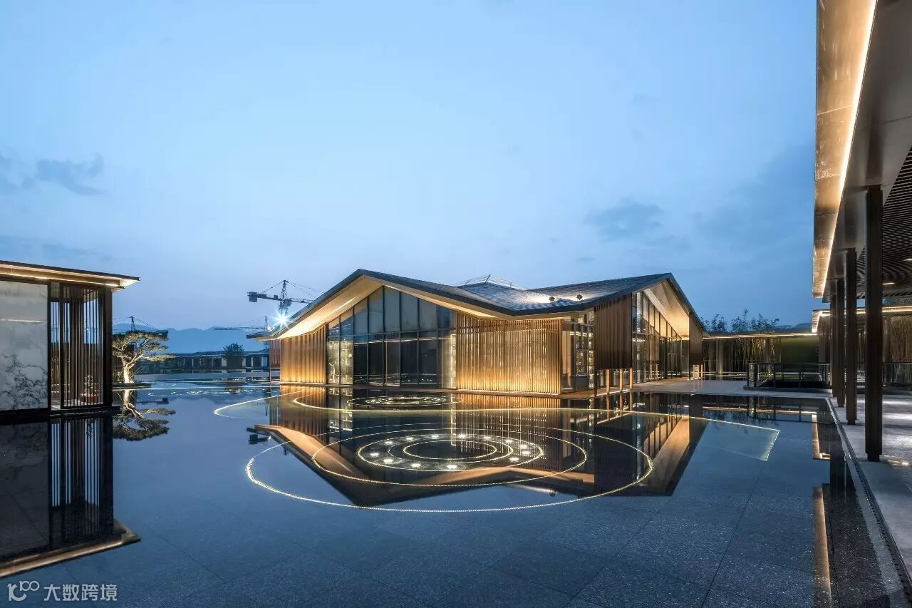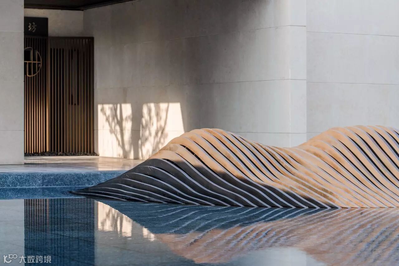 “月印万川,处处皆圆”,项目入口见“印月”,并运用水的元素,采用“四水归堂”的手法,呼应“月印万川”之意,表达东方文化中天人合一的理想状态,成为入口区域视觉和精神的向心所在。