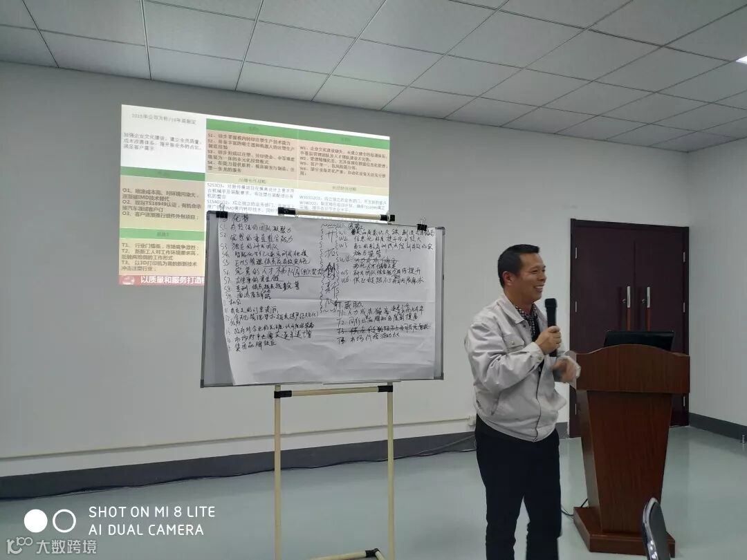 围绕SWOT分析法,根椐公司目前行式分组开展探讨、分析,并将讨论结果各组派代表上台解说。