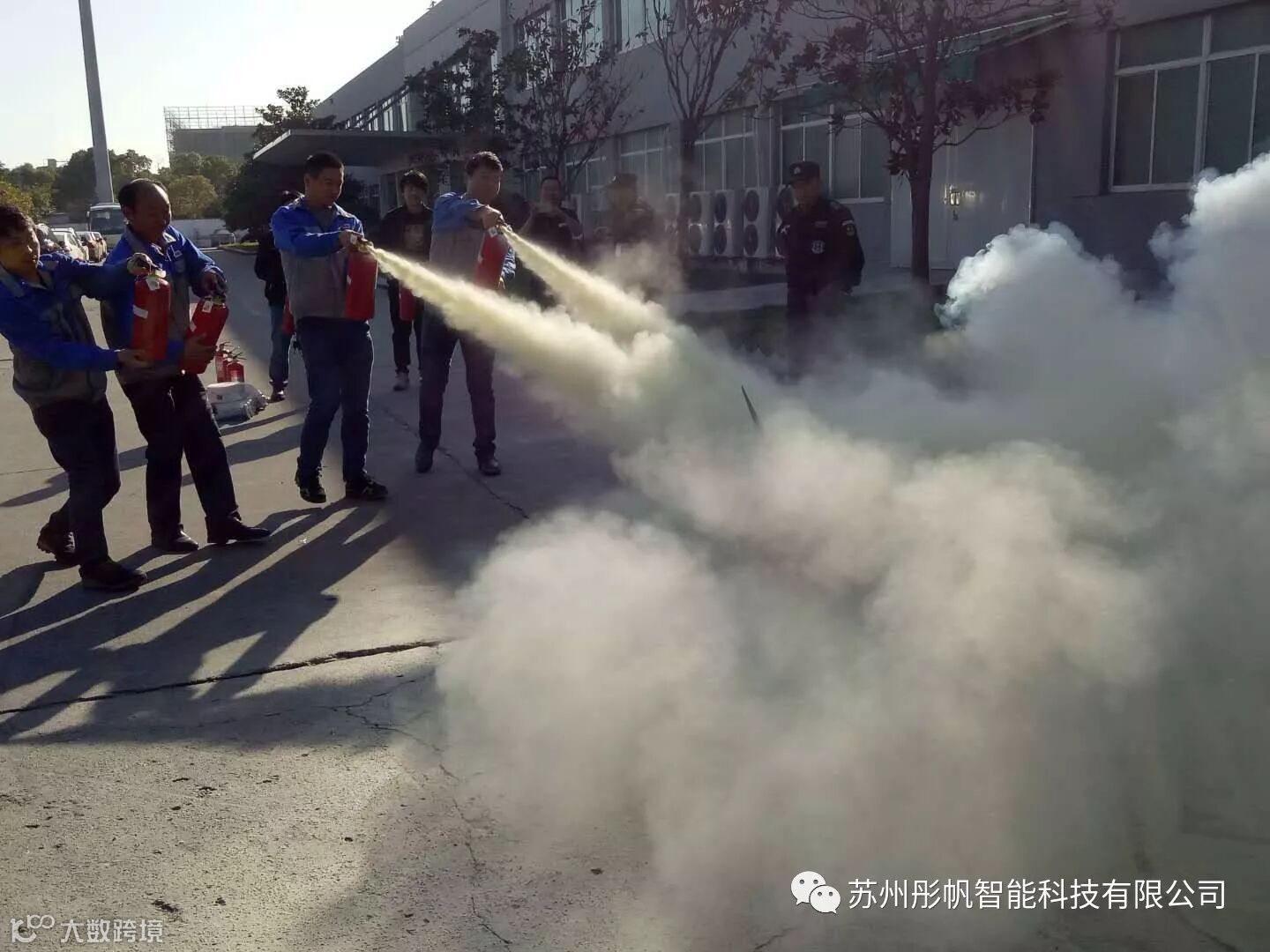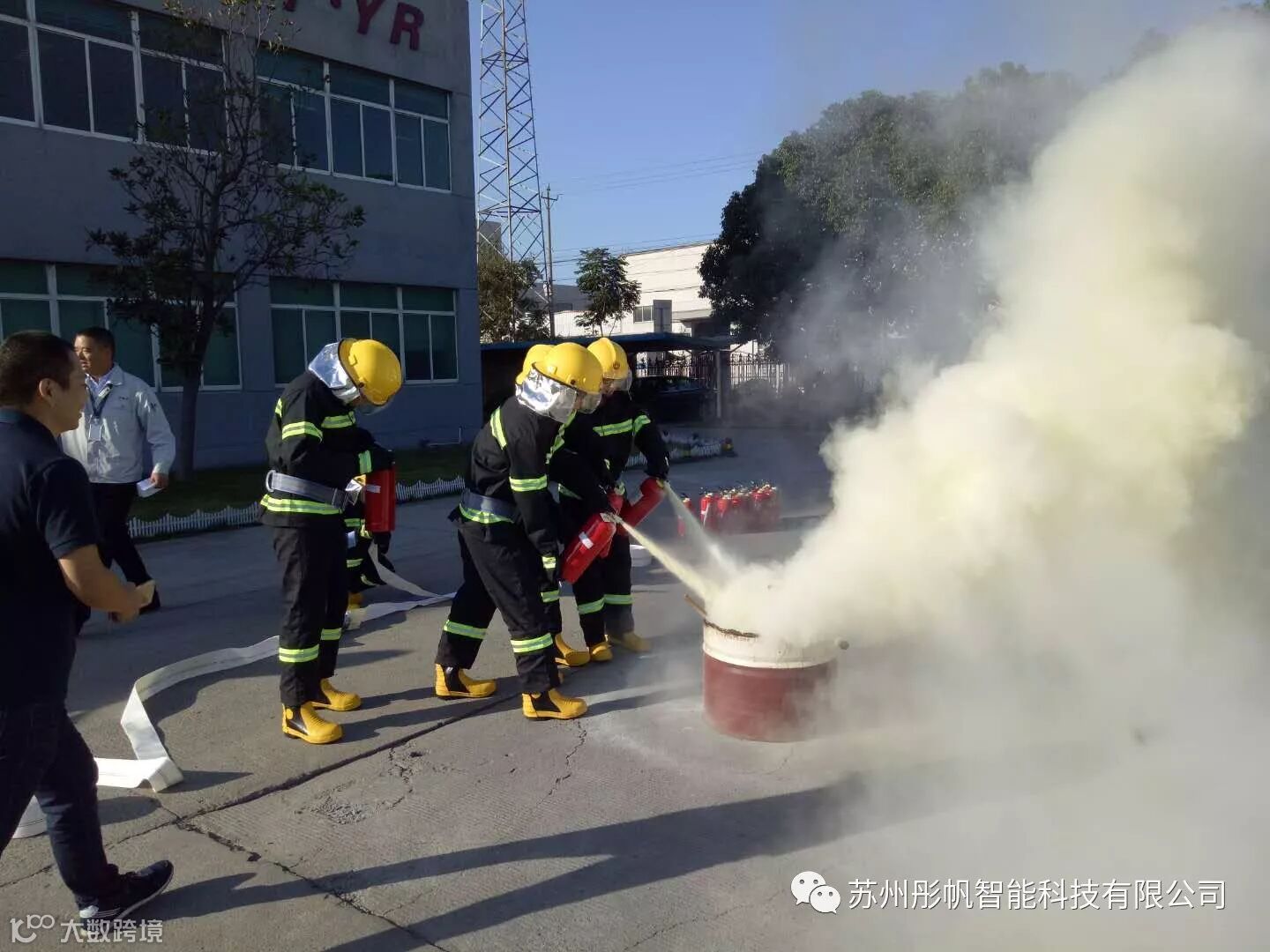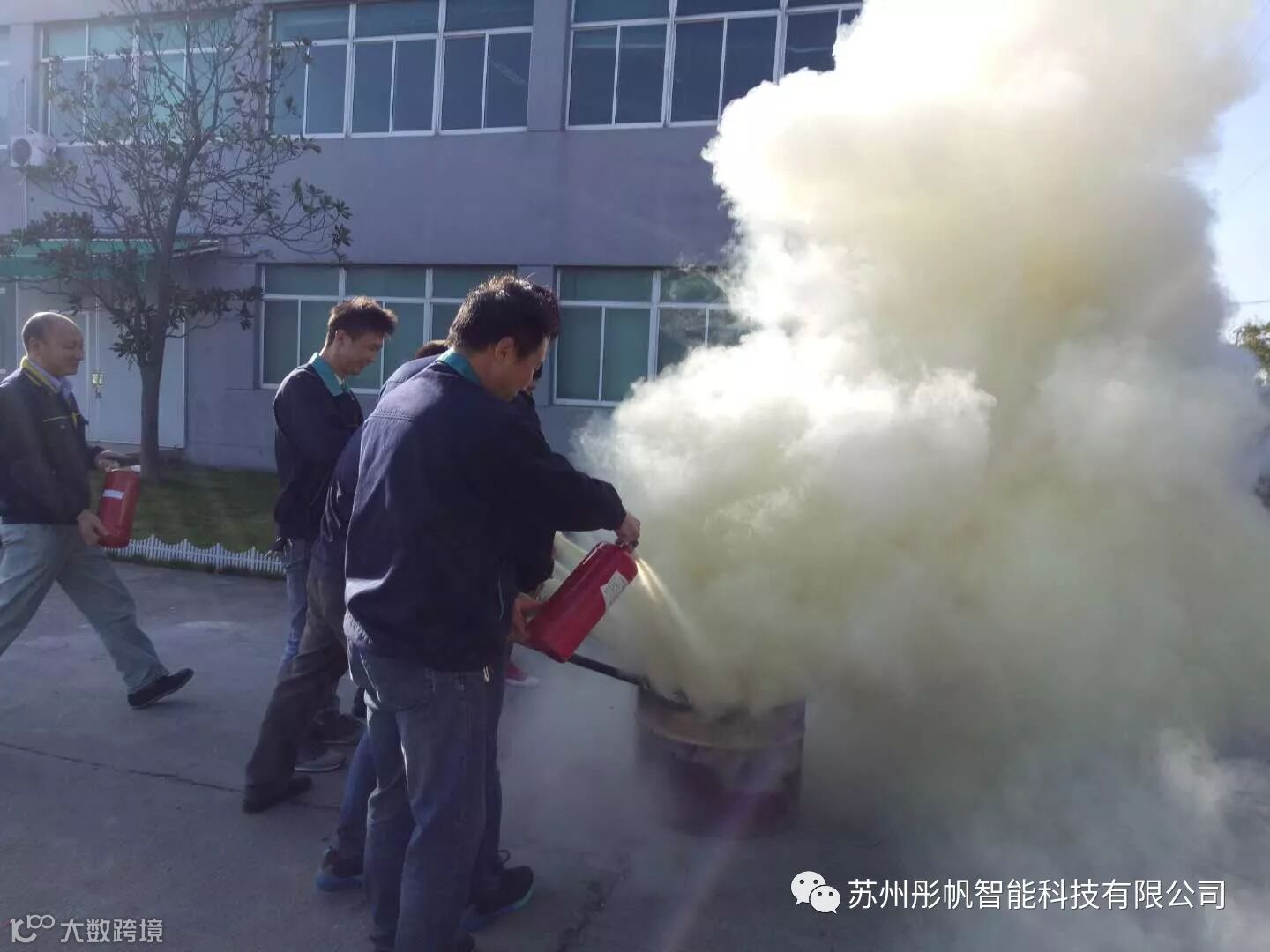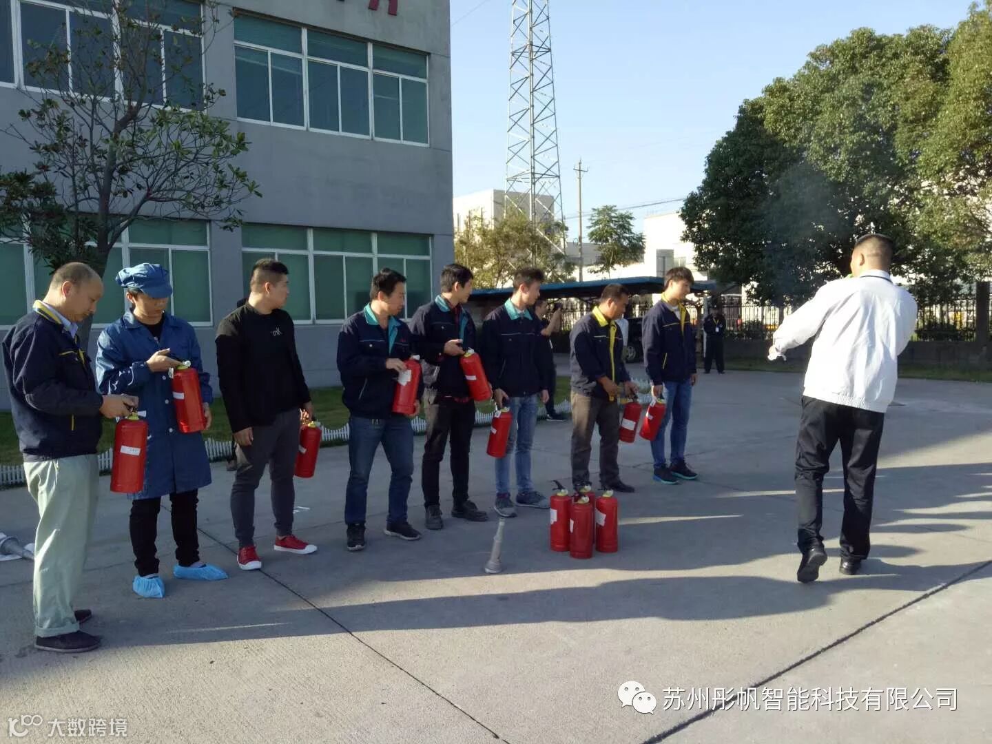 演习分三项,一、发现火情人员紧急疏散至安全区域,二、总指挥讲解灭火器使用方法,三、实际灭火演练。