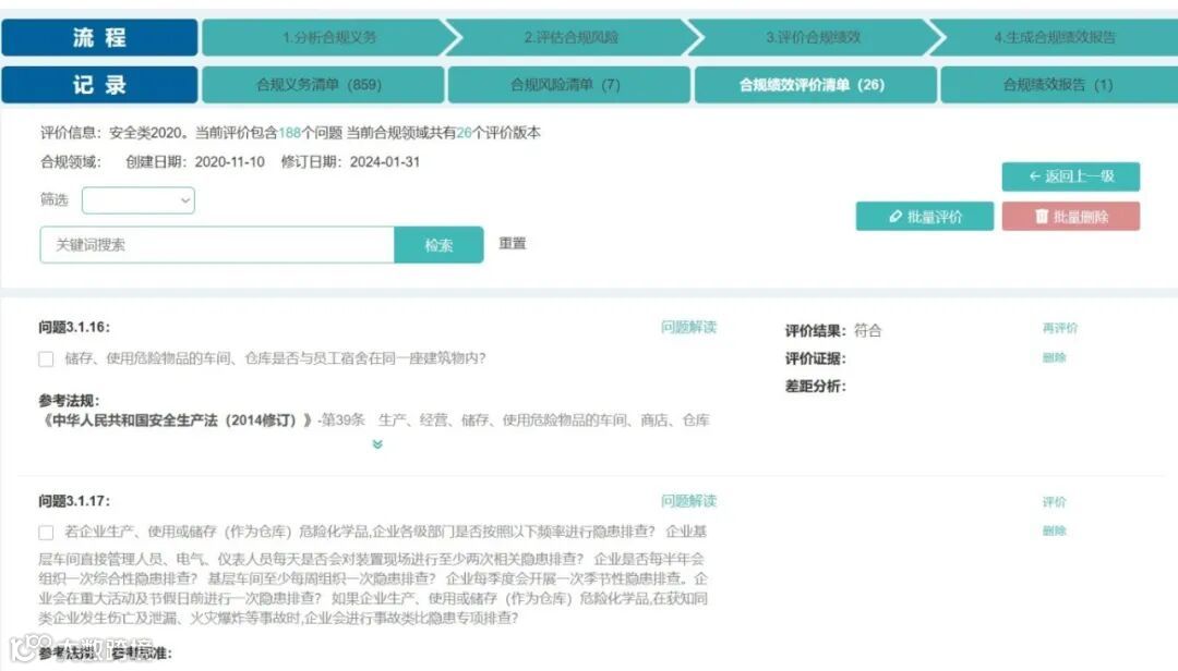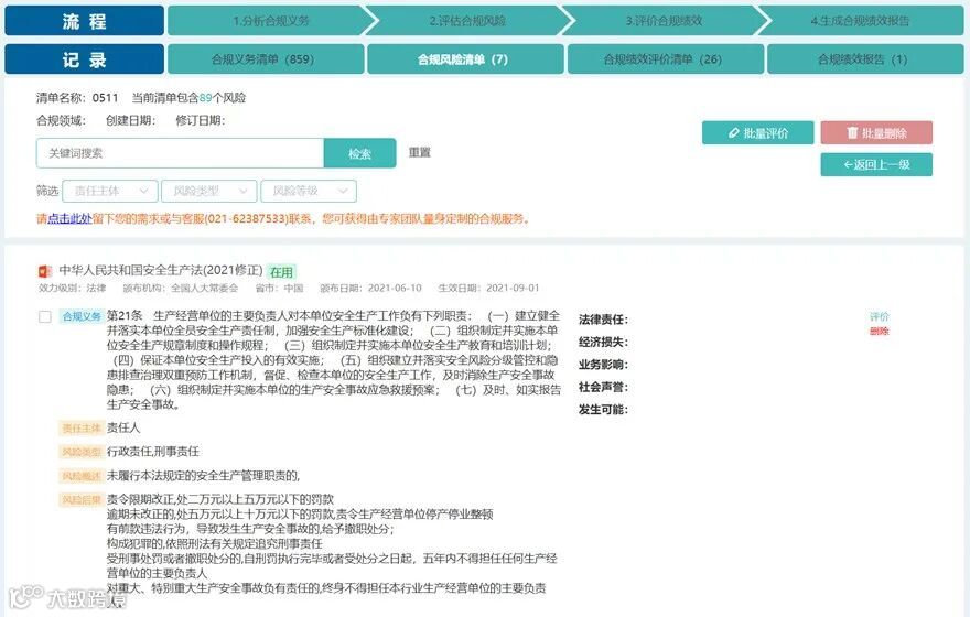 评估合规风险页面展示