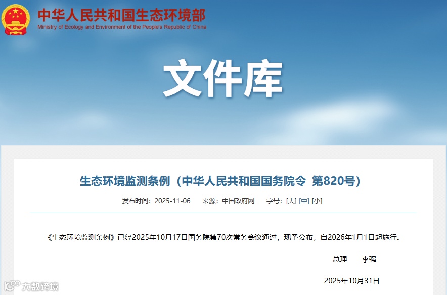2025年10月31日《生态环境监测条例》(以下简称“条例”)发布,并于2026年1月1日起正式施行。《条例》中对企业日常自行监测管理提出了多项合规要求,并对应有明确的违规罚则,重点内容如下所示: