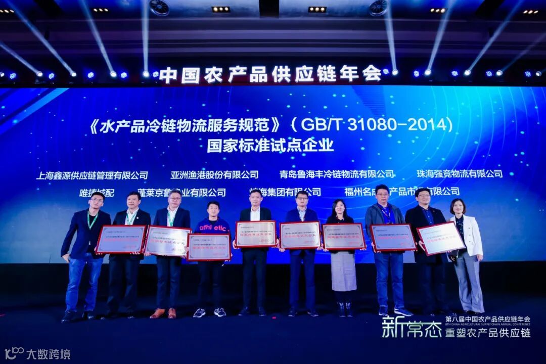 2020年10月28-30日,由中国物流与采购联合会主办,中国物流与采购联合会农产品供应链分会承办的“2020中国农产品供应链年会”在重庆召开,来自顺丰、京东物流等百余家相关知名企业的近500名行业精英参会,鑫源供应链受邀参会并荣获《水产品冷链物流服务规范》(GB/T31080-2014)国家标准试点企业。