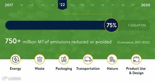从赋能的角度来看,一个比较好的案例来自沃尔玛的“十亿吨计划(Project Gigaton)”,其本质是希望供应商设定科学的碳管理目标,并在能源使用、保护生态、减少废弃物、包装物、交通物流与产品设计等方面采取可操作的碳减排措施。与此同时,沃尔玛在十亿吨计划的网站平台上给出了丰富的关于气候变化的学习资源以及碳减排项目的案例,方便供应商规划自身的碳减排路径,并能够尽快启动属于自己的降碳项目。