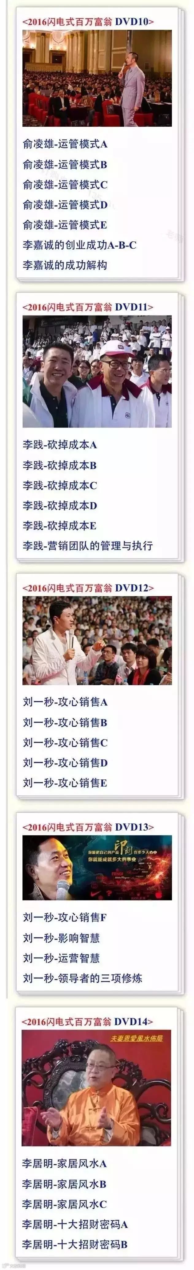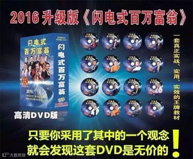 《2016闪电式百万富翁DVD》内容庞大,覆盖性广;拥有它你可以学到最实战的内容: