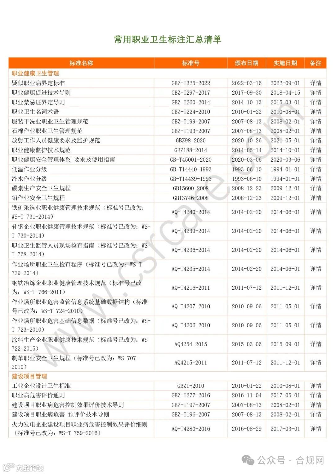 查看完整版《常用职业卫生标准汇总清单》:http://www.csrcare.com/Library/ShowFile?id=4879