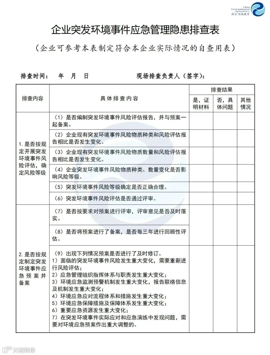 答:明确企业现有环境风险等级。