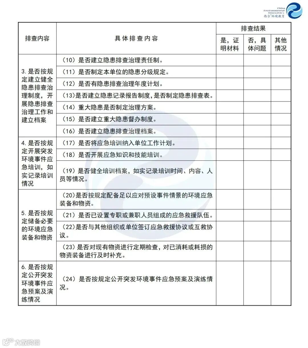 突发环境事件应急管理隐患排查