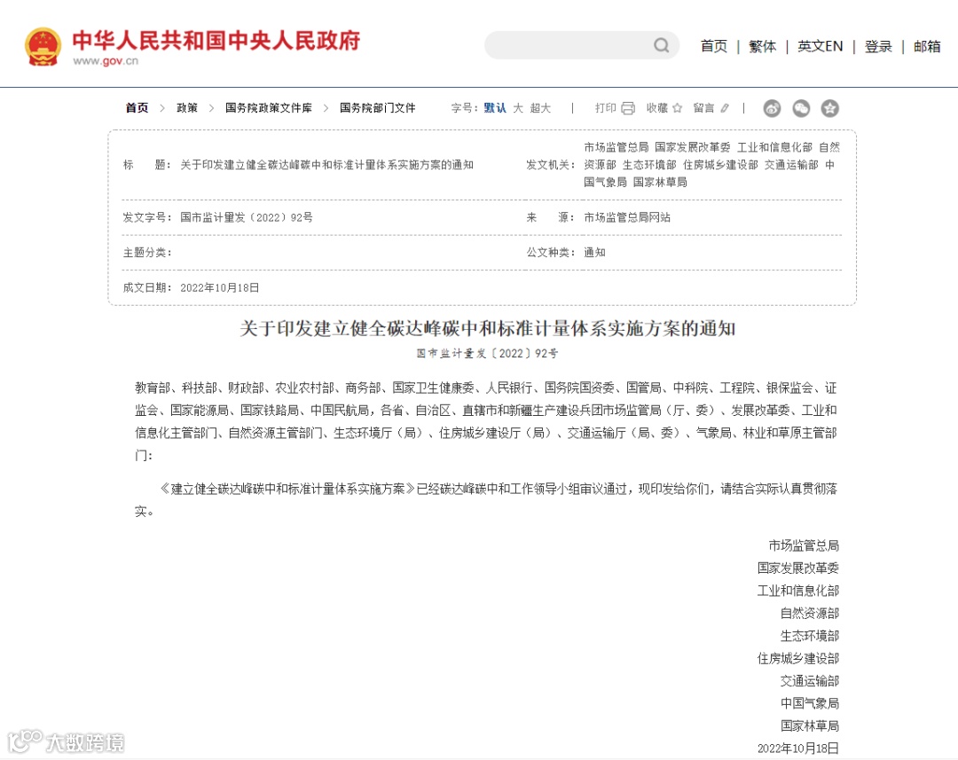 同年10月,国家发展改革委等九部门联合发布了《建立健全碳达峰碳中和标准计量体系实施方案》,提出:到2025年基本建立碳达峰碳中和标准计量体系,主要行业碳核算核查标准实现全覆盖。同时,要加强碳达峰碳中和计量国际交流合作与互认。