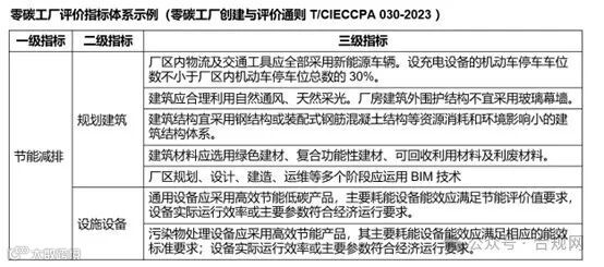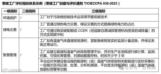 我们再以零碳工厂创建与评价通则(T/CIECCPA 030-2023)中的评价指标体系来举例。