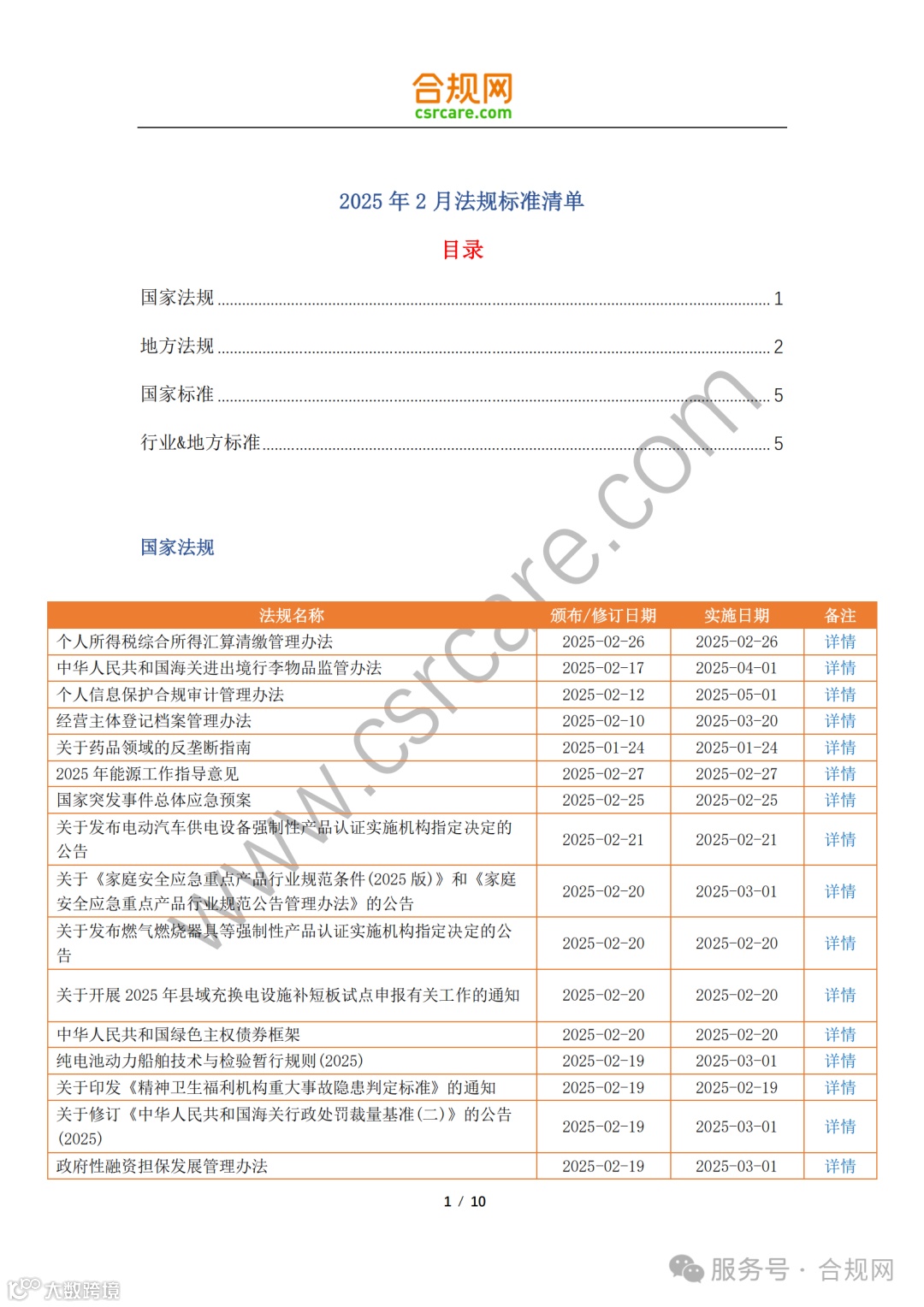 合规网2025年2月法规标准清单
