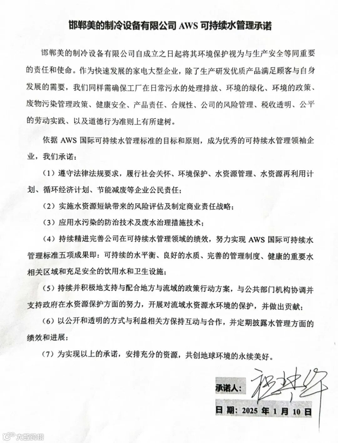 “水是生命之源、生产之要、生态之基”。邯郸美的制冷设备有限公司(以下称“美的空调邯郸工厂”)致力于积极、主动实施环境可持续发展管理策略,以公开透明的方式与各利益相关方通力协作,以减少我们的业务、产品和供应链对环境产生的影响来确保人类健康,始终践行保护自然环境和社区、保护自然资源和建立健康地球等方面的责任和义务。