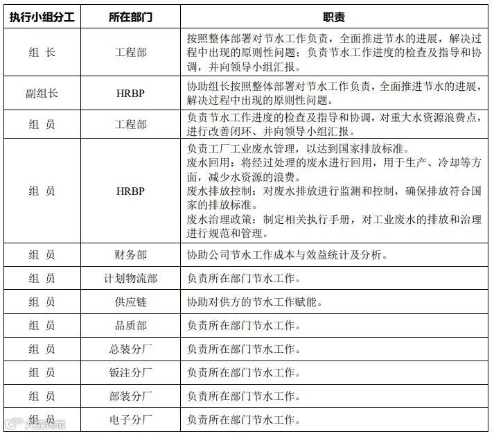 可持续水管理工作执行小组及职责:
