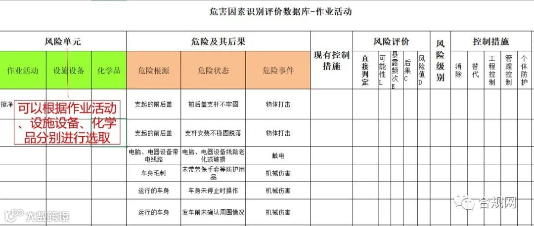将各场所/设备设施/作业活动作为基本的辨识单元,以确保风险辨识覆盖本单位及相关方作业的所有场所、设备设施和作业活动。