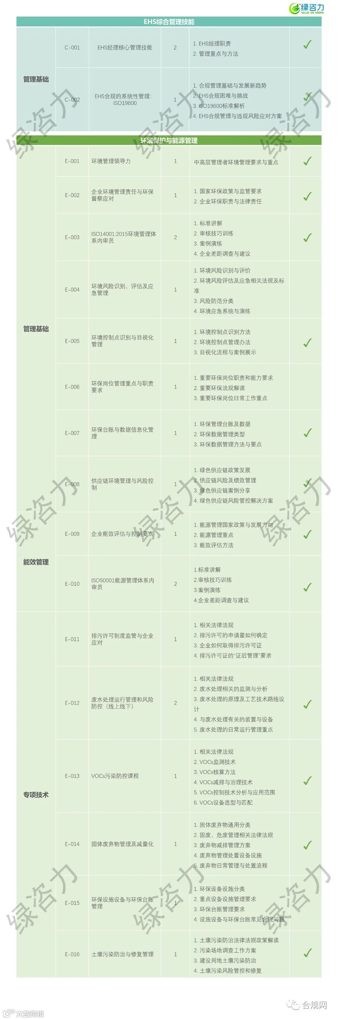 为帮助企业顺利开展合规工作,绿咨力根据多年培训咨询实践经验、精心设计和打磨课程,开设EHS合规精品课程!如企业有相关需求,欢迎拨打021-62387533!或联系以下各区域人员。
