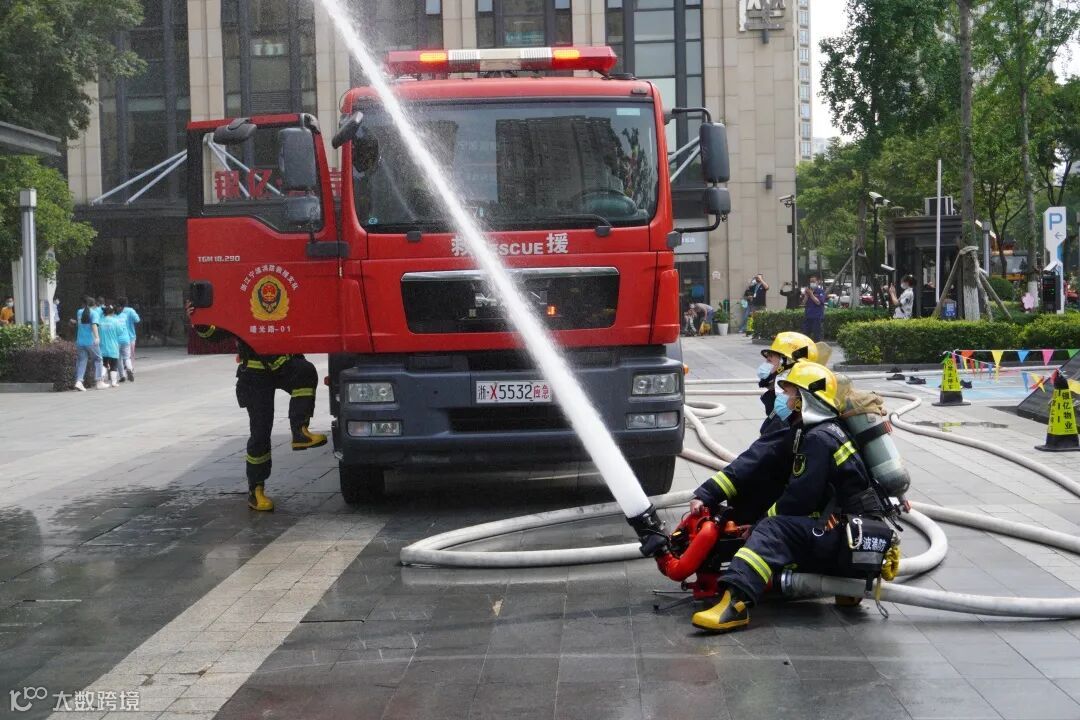 “东岸A座3楼发生火情!”随着警铃拉响,现场人员迅速疏散,一场消防演练有序展开。